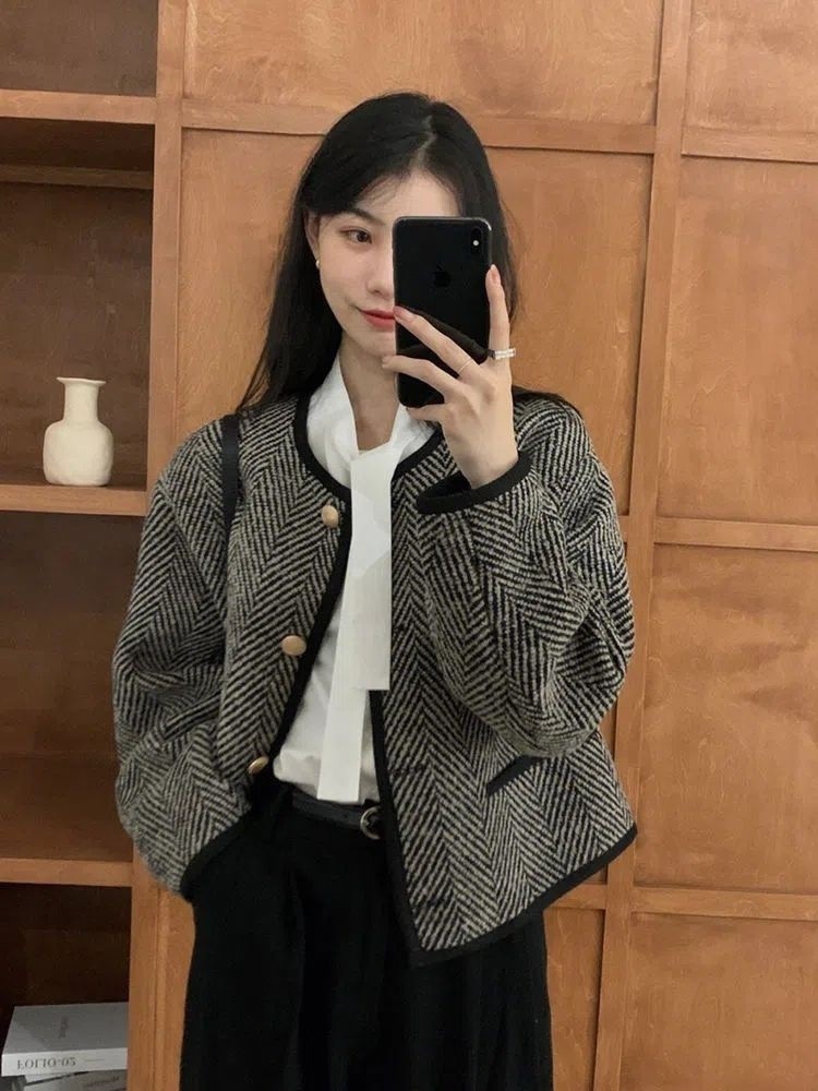 여성을 위한 프렌치 레트로 스타일 트위드 재킷, 콜드 스타일, 고급 짧은 모직 재킷, 가디건 탑, 봄, 가을스토어 가기