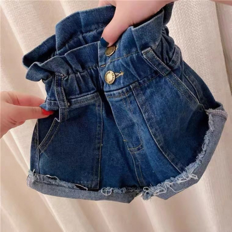 아동 데님 반바지 2025 봄 여름 새로운 스타일 여아 패셔너블하고 다재다능한 하이 웨이스트 와이드 레그 버드 데님 반바지 트렌디스토어 가기