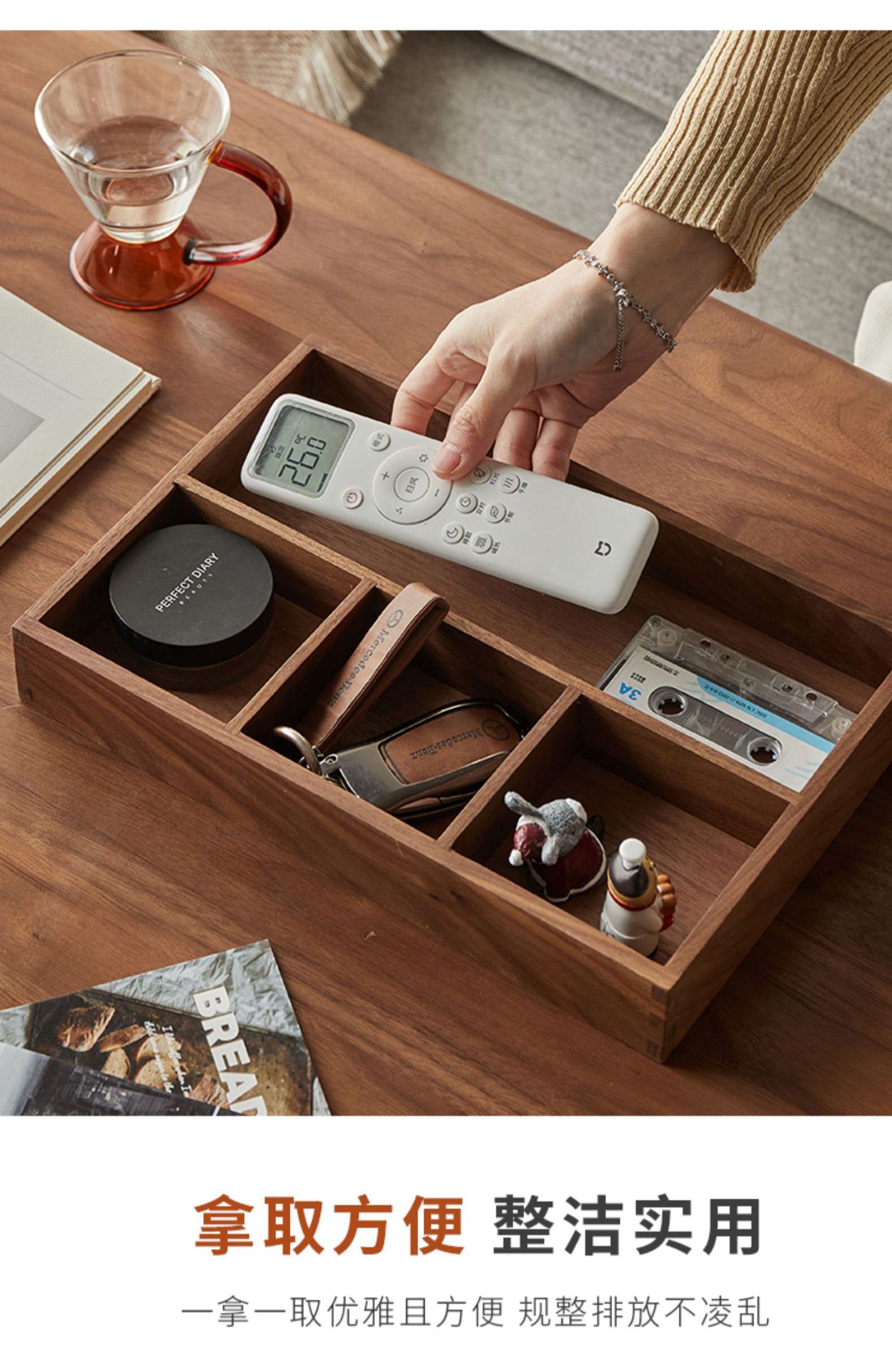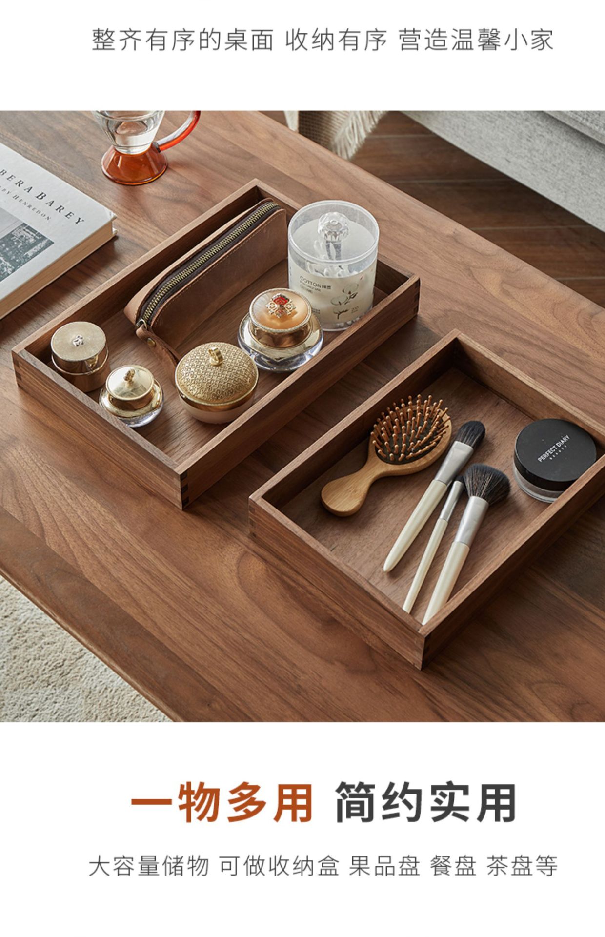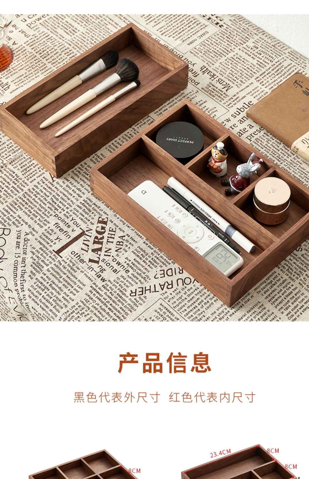 단단한 나무 현관 데스크탑 잡화 커피 테이블 사무실 키 보관 상자 보석 화장품 문구 정리 상자 트레이