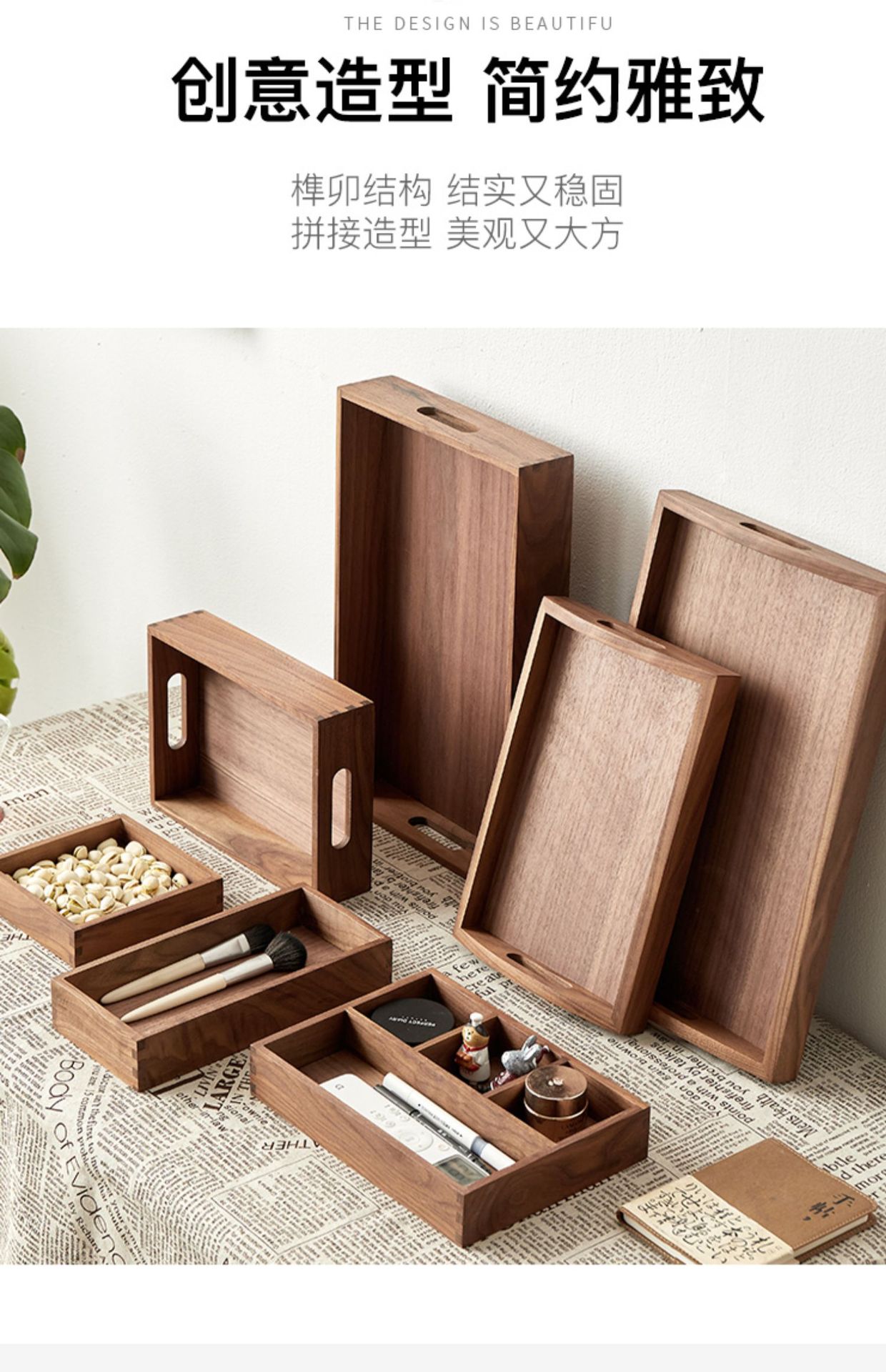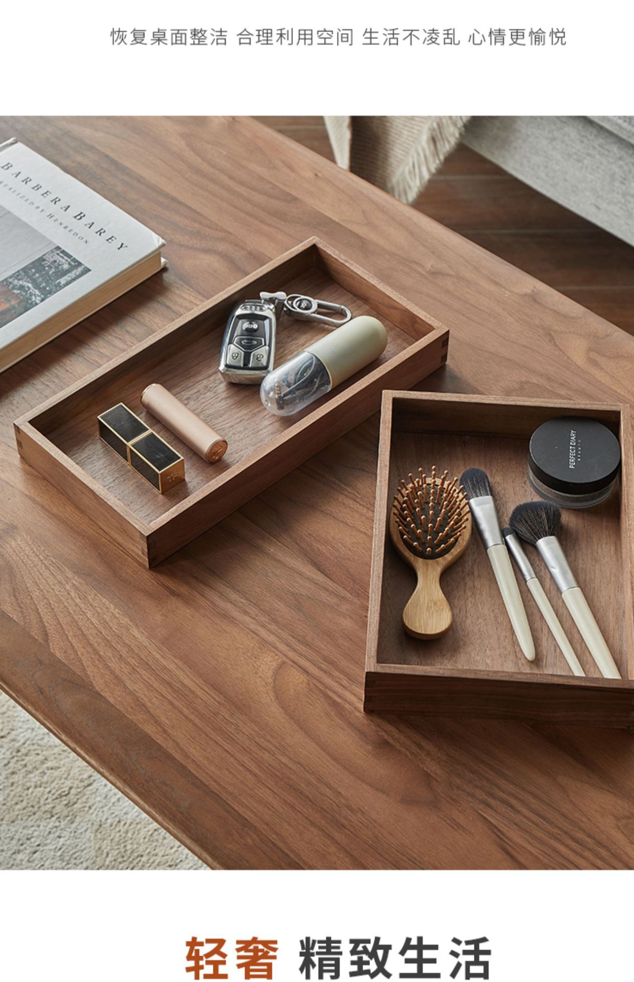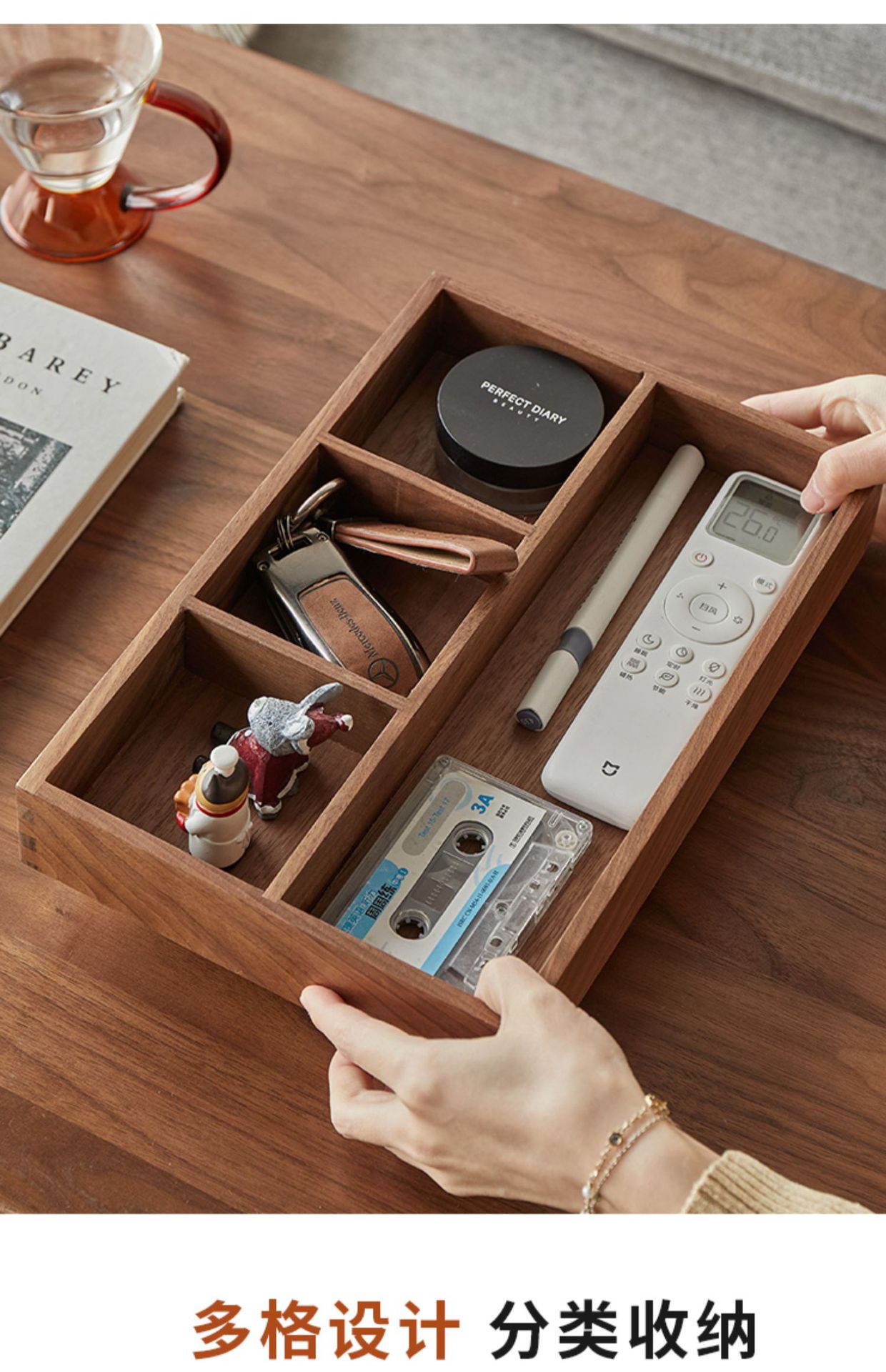 단단한 나무 현관 데스크탑 잡화 커피 테이블 사무실 키 보관 상자 보석 화장품 문구 정리 상자 트레이