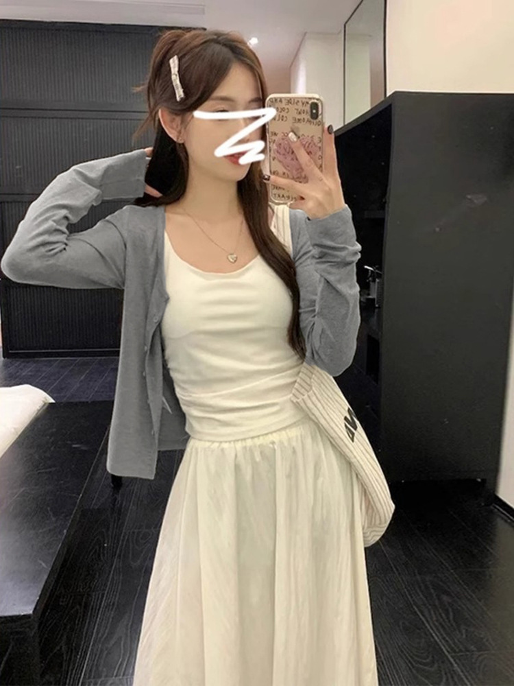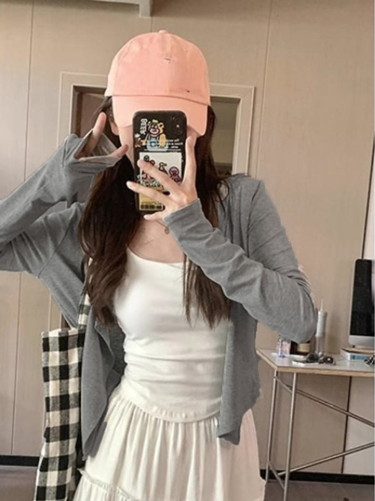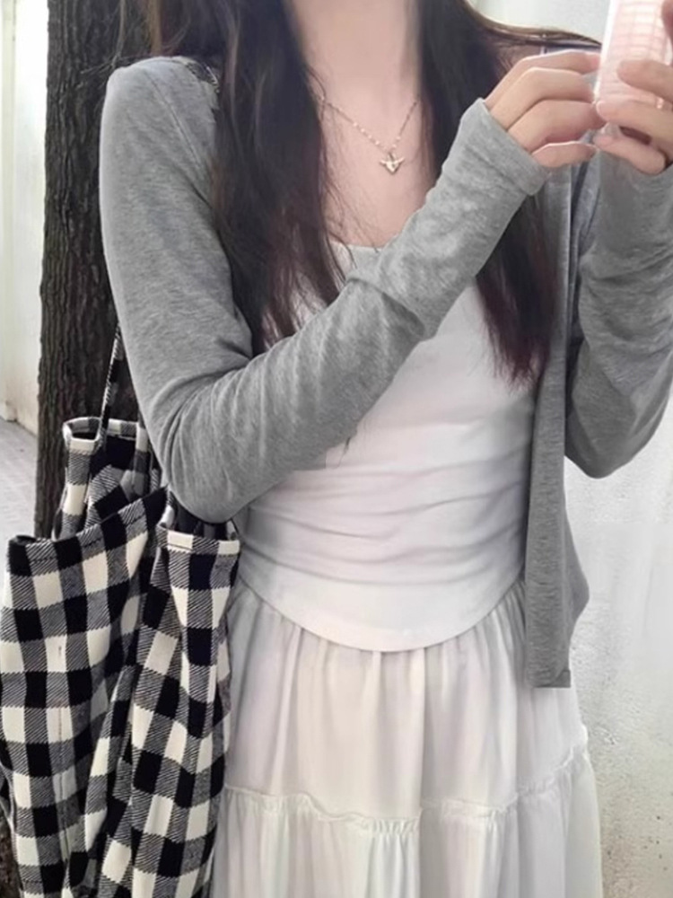 여름 여성을 위한 검은색 얇은 긴팔 니트 가디건 새로운 스타일의 작은 아우터 탑 자외선 차단 짧은 코트 블라우스스토어 가기