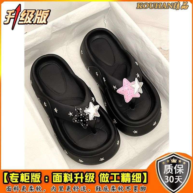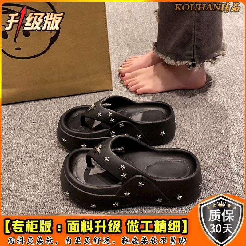 여성을위한 두꺼운 밑창 높이 증가 핫 소녀 플립 플롭 2025 여름 새로운 패션 겉옷 비치 캐주얼 스타 플립 플롭스토어 가기