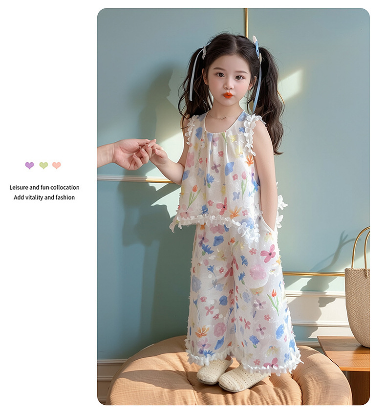 여자 여름 조끼 세트 2025 새로운 어린이 슈퍼 멋진 달콤한 옷 여자 얇은 통기성 모기 방지 바지