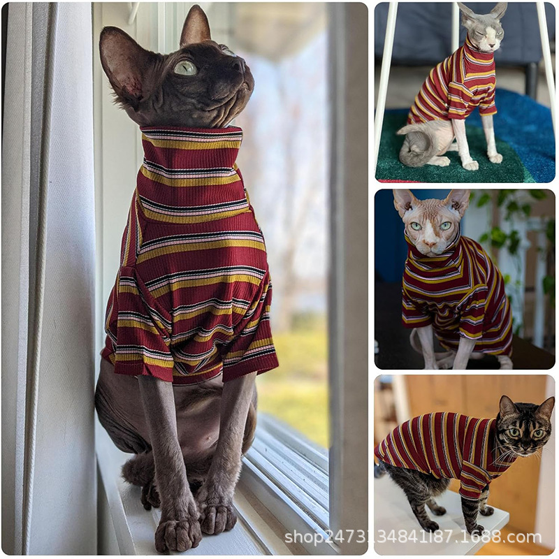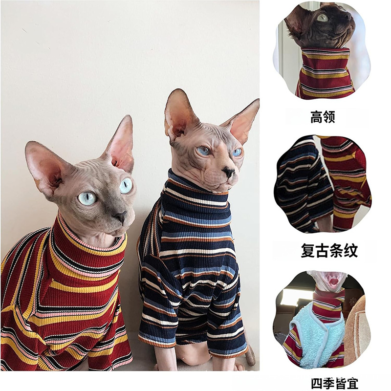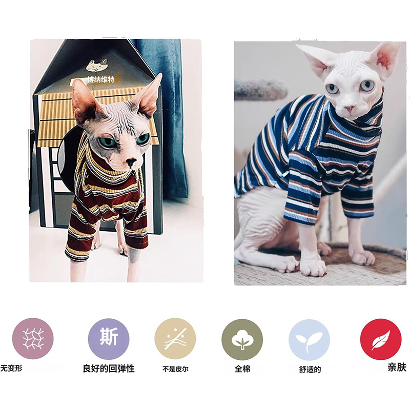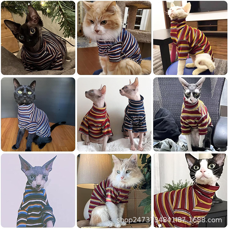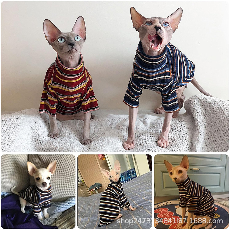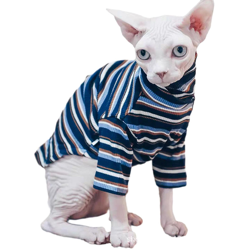 블루 하이 넥 스트라이프 고양이 옷 고양이 셔츠 털이없는 고양이 스웨터 털이없는 고양이 스트라이프 티셔츠스토어 가기