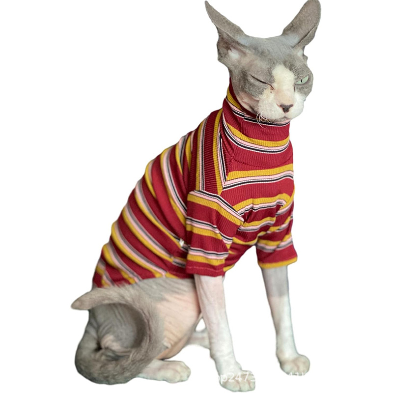 블루 하이 넥 스트라이프 고양이 옷 고양이 셔츠 털이없는 고양이 스웨터 털이없는 고양이 스트라이프 티셔츠