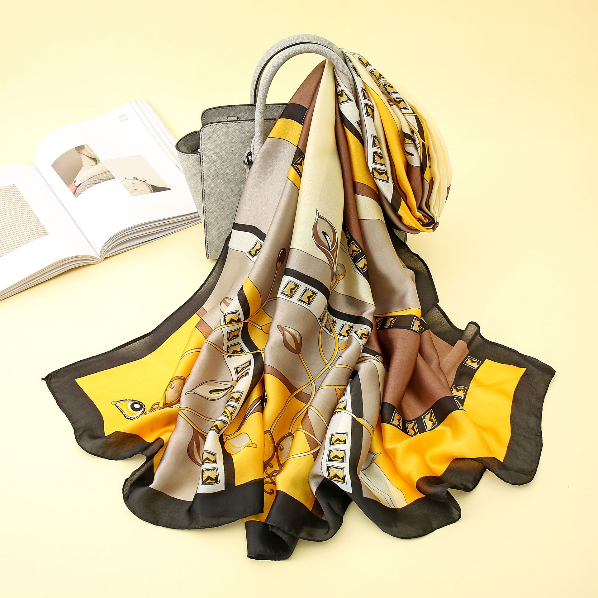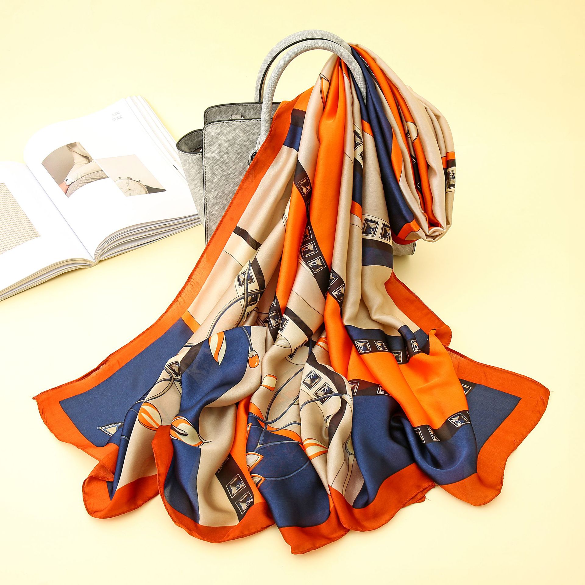 Gaohe 유럽과 미국의 패션 벨트 체인 새로운 실크 새틴 선 스크린 목도리 여성 해변 휴일 긴 스카프 얇은 실크 스카프스토어 가기