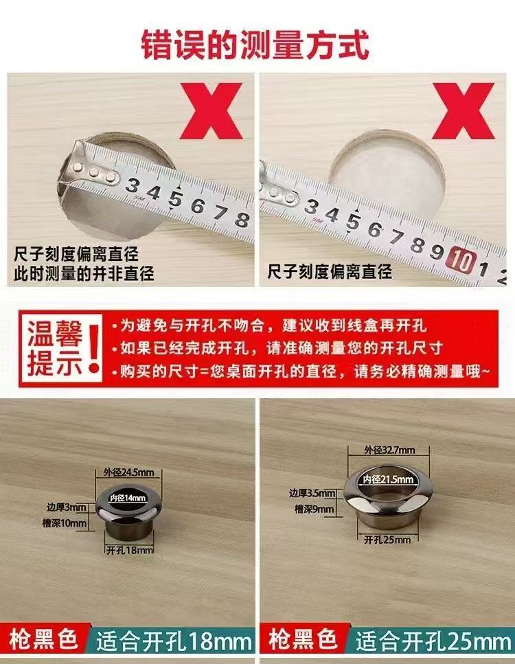 • [ABS 플라스틱 장식 링] 오프닝 25mm 건 블랙