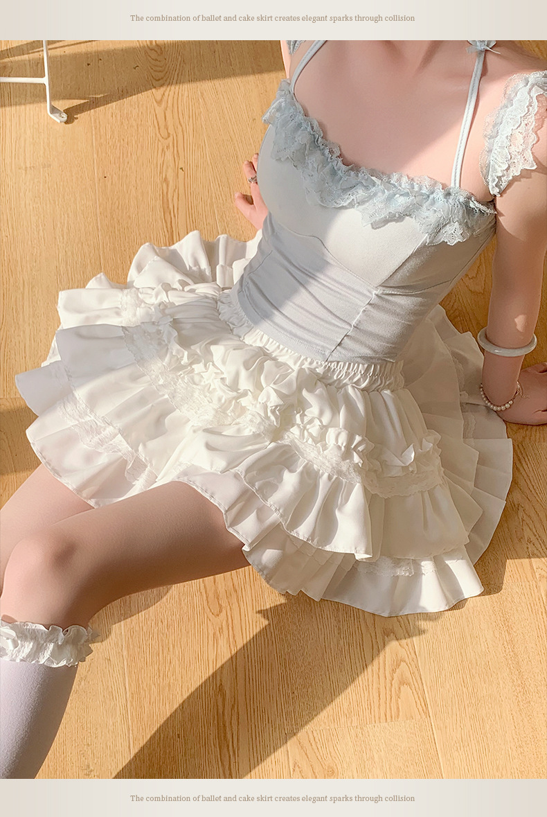 화이트 레이스 케이크 투투 스커트 여성용 스위트 스커트 A 라인 스커트 하이 웨이스트 슬리밍 노출 방지 발레 스타일 스커트스토어 가기