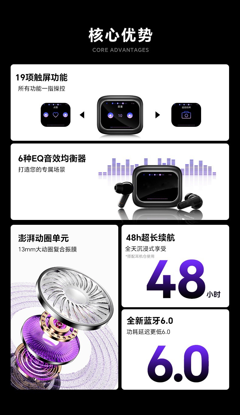 • 해외 직구 인기 상품 / 터치스크린 음량 조절 / ENC 블루투스 통화 노이즈 캔슬링/주변음 허용 모드