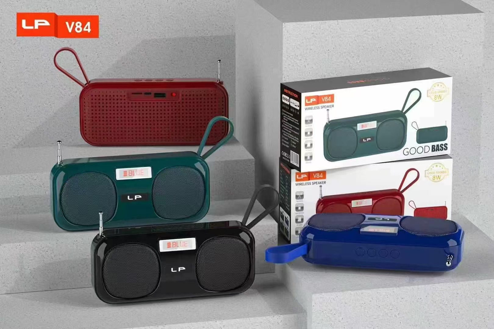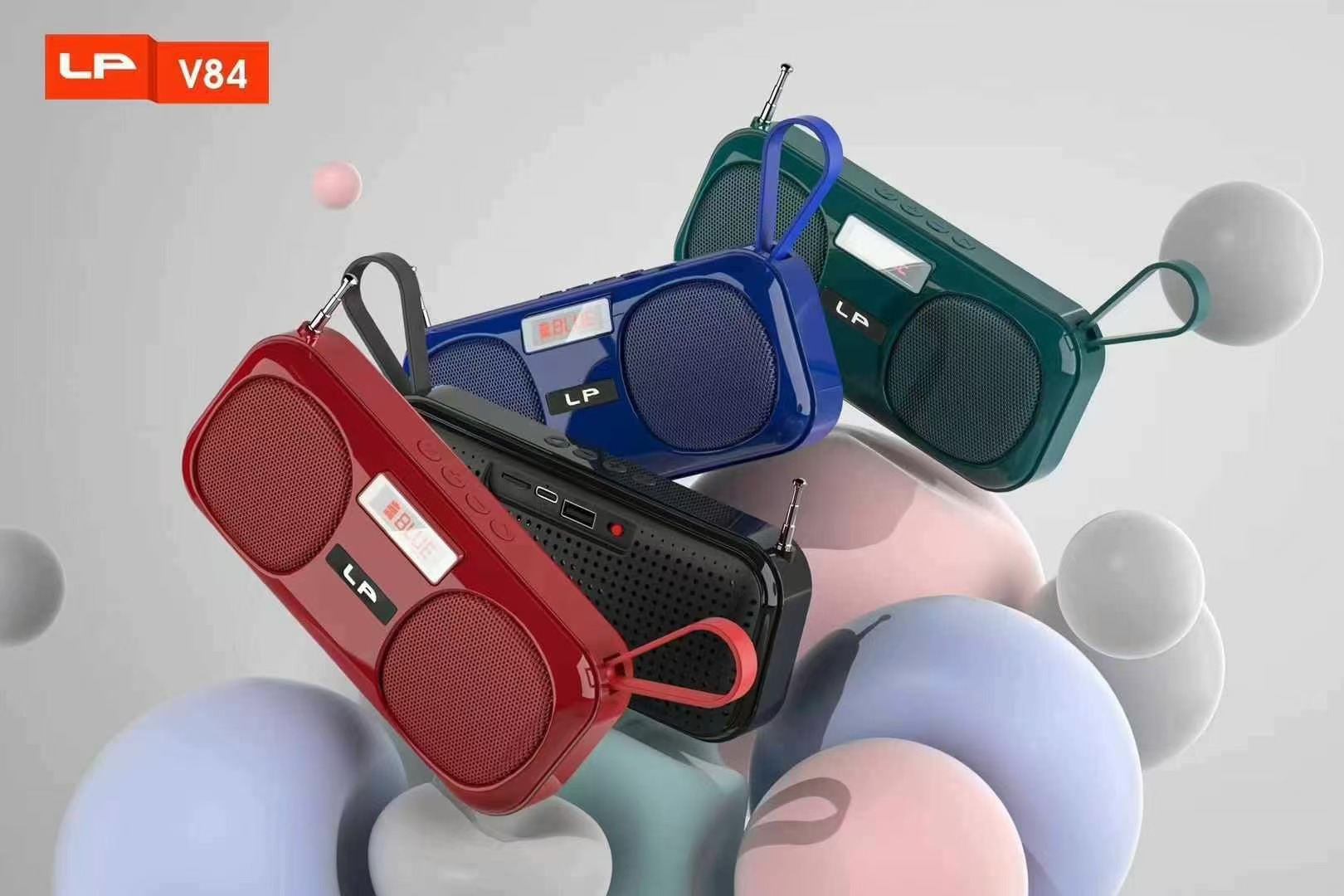 새로운 LP-V84 휴대용 블루투스 스피커 야외 휴대용 외부 FM 안테나 라디오 서브 우퍼 소형 스피커