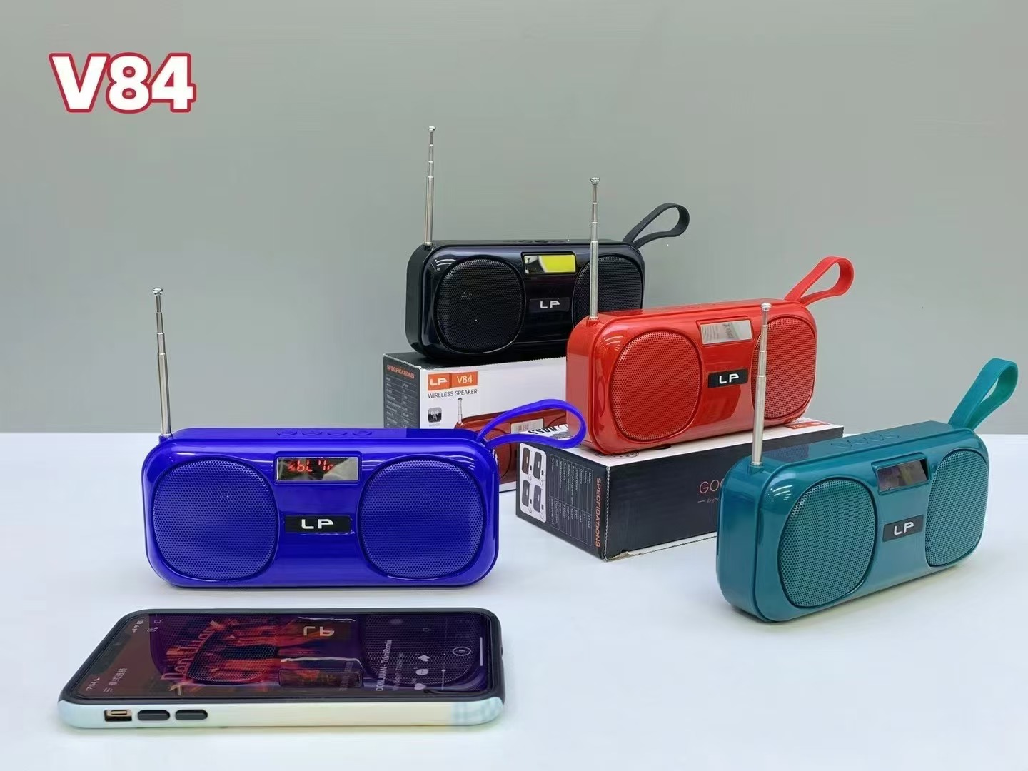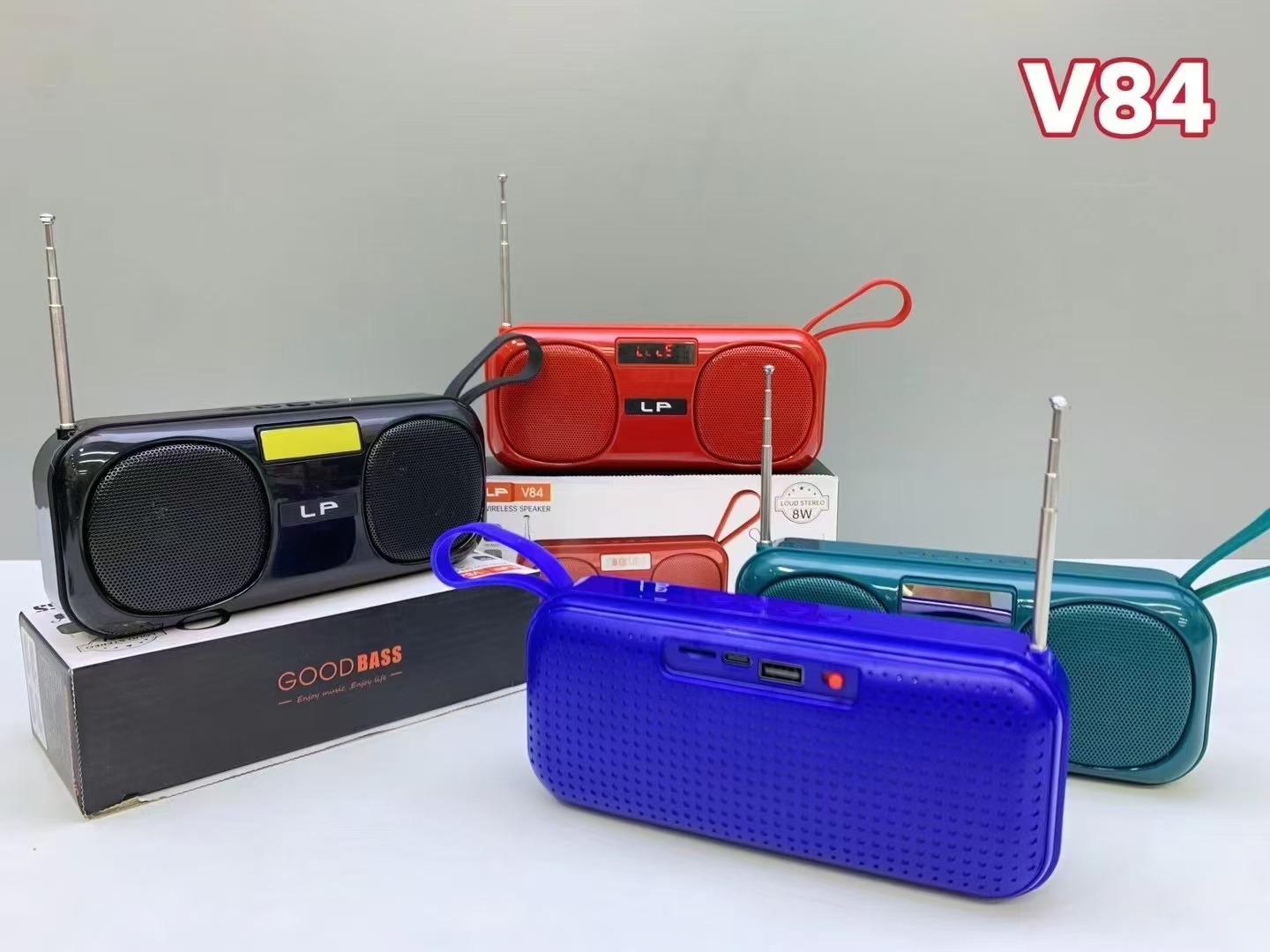 새로운 LP-V84 휴대용 블루투스 스피커 야외 휴대용 외부 FM 안테나 라디오 서브 우퍼 소형 스피커스토어 가기