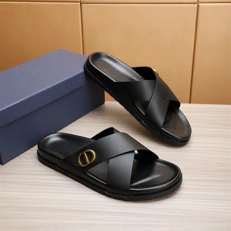 2025 유럽 스테이션 남성용 정품 가죽 슬리퍼 여름 새로운 스타일 라이트 럭셔리 슬리퍼 실내 및 실외 캐주얼 다목적 슬리퍼 트렌드