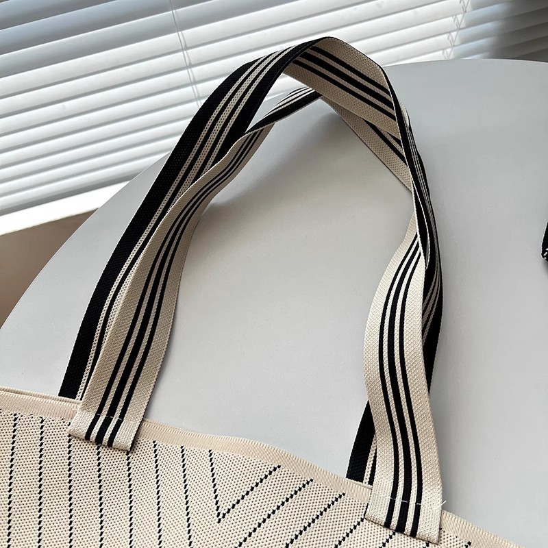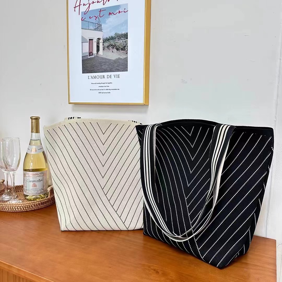 간단한 올 매치 흑백 모양의 줄무늬 어깨 가방 유행 도시 아름다움 여성을위한 대용량 짠 가방스토어 가기