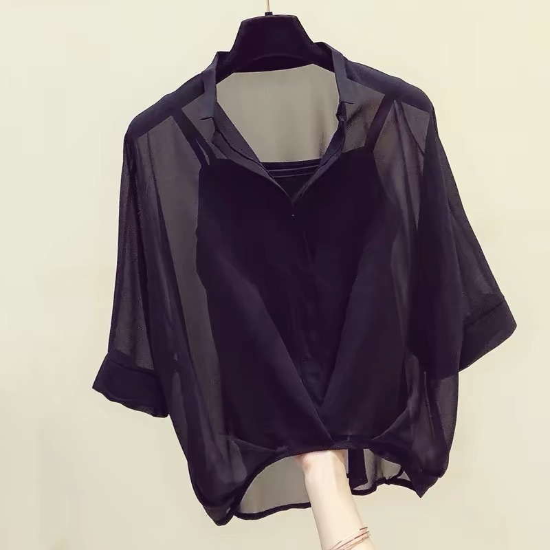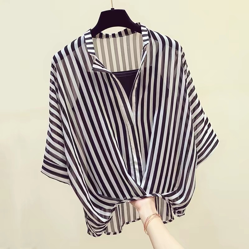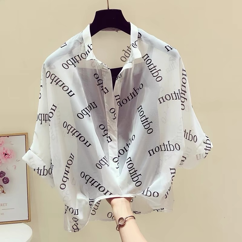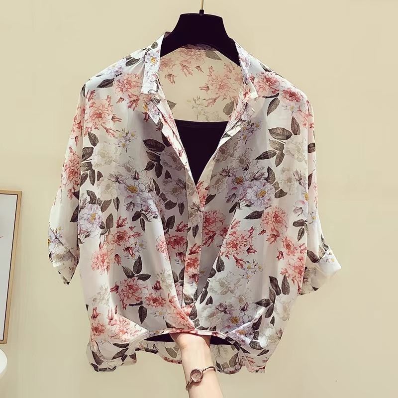 시폰 셔츠 투피스 여름 루즈한 반팔 허리 탑 2025 새로운 스타일의 작은 패션 꽃무늬 셔츠스토어 가기