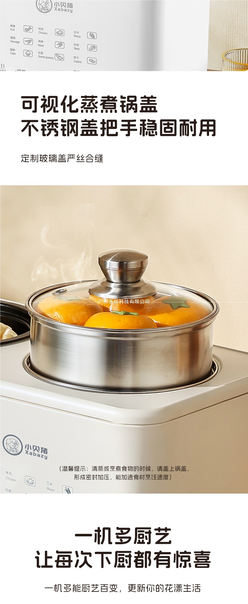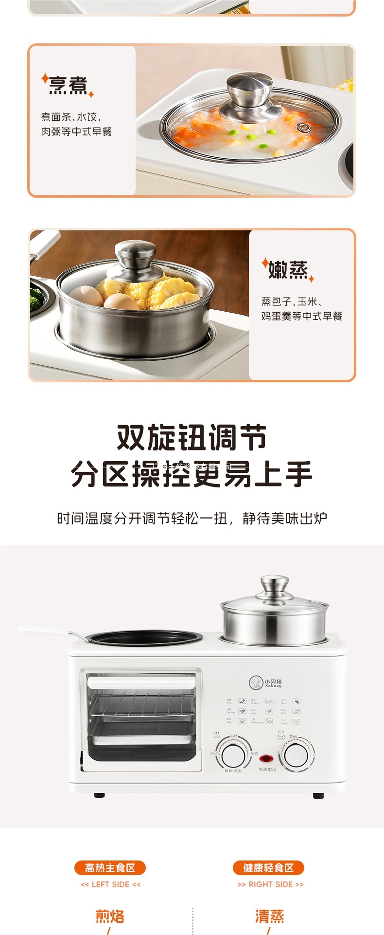 Xiaobei Pig 게으른 4-in-1 아침 식사 기계 가정용 다기능 튀김 스테이크 토스트 튀김 찜 냄비 소형 오븐