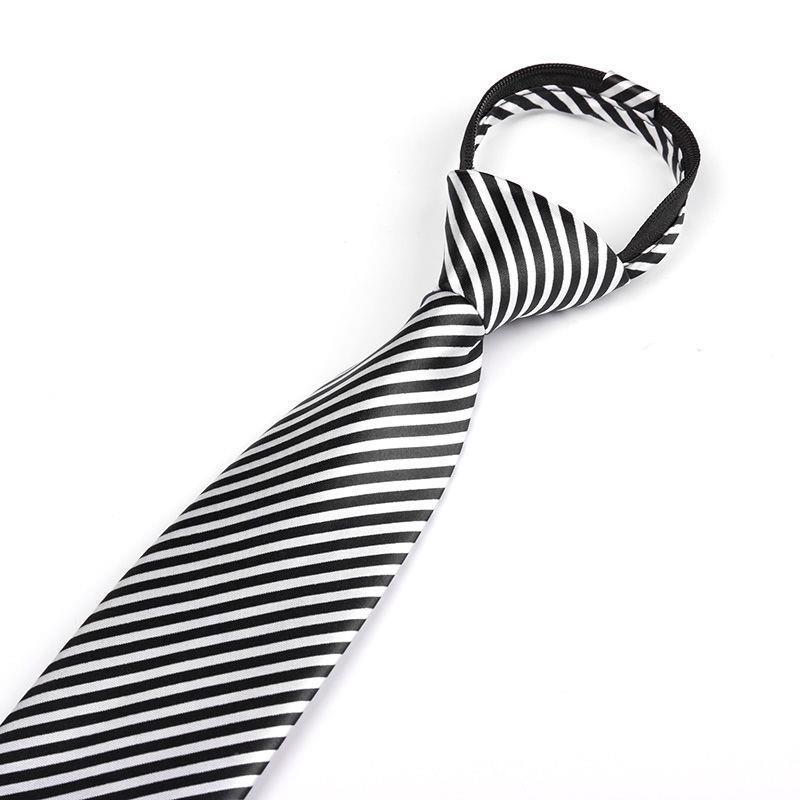 지퍼 넥타이 남성용 흑백 줄무늬 비즈니스 전문 게으른 한국식 줄무늬 남성용 원풀 넥타이