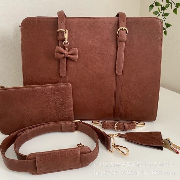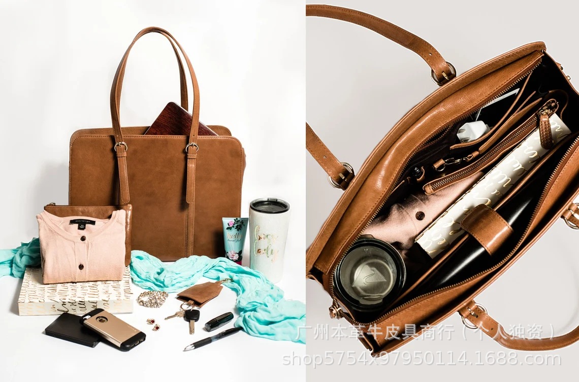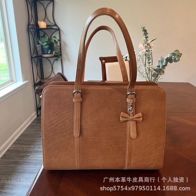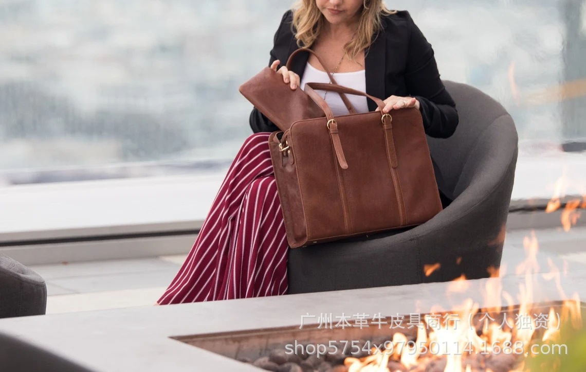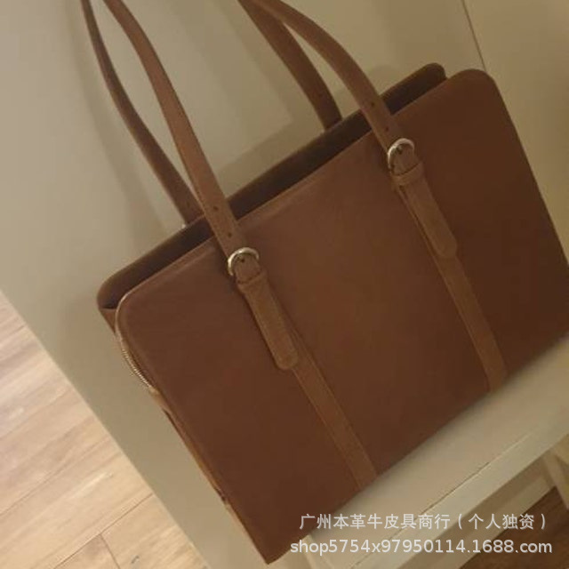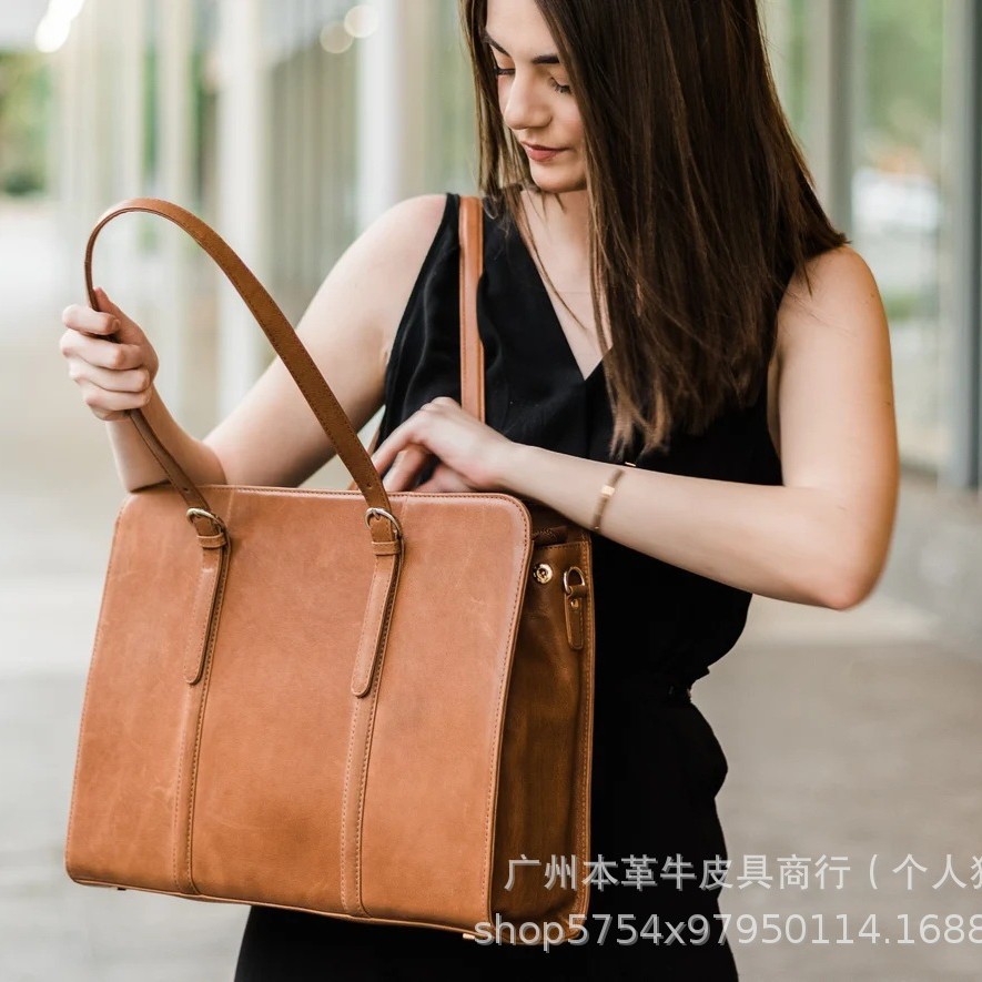 국경 간 인기 판매 복고풍 정품 가죽 여성용 어깨 컴퓨터 가방 대외 무역 미친 말 가죽 다기능 패션 크로스 바디 서류 가방