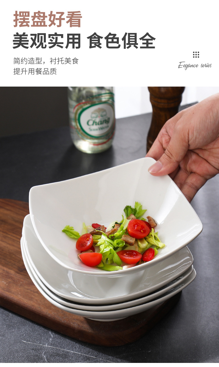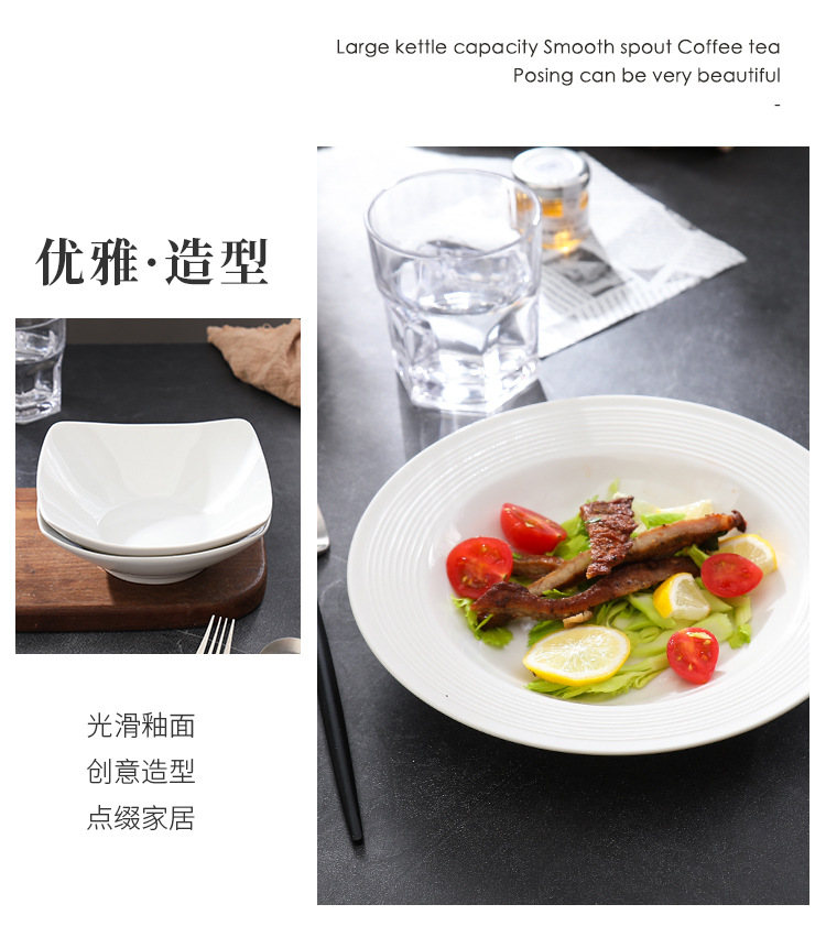 순수한 흰색 간단한 광장 수프 그릇 수프 접시 가정용 세라믹 딥 플레이트 창조적 인 맞춤형 식기 2025 새로운 스타일