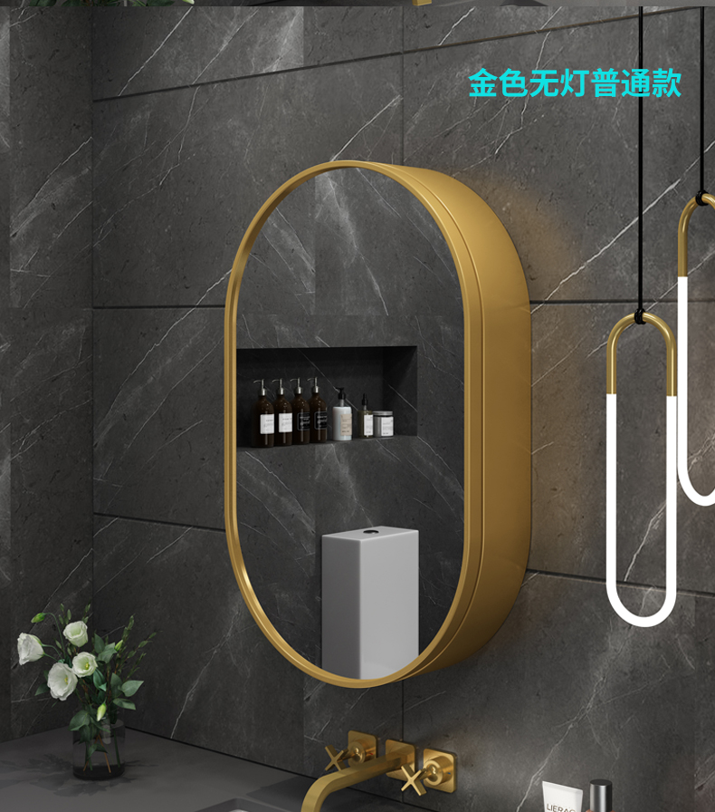 노르딕 솔리드 우드 타원형 욕실 거울 캐비닛 벽 보관이 달린 화장실 드레싱 거울과 함께 램프로 지능적으로 매달려