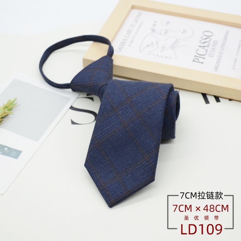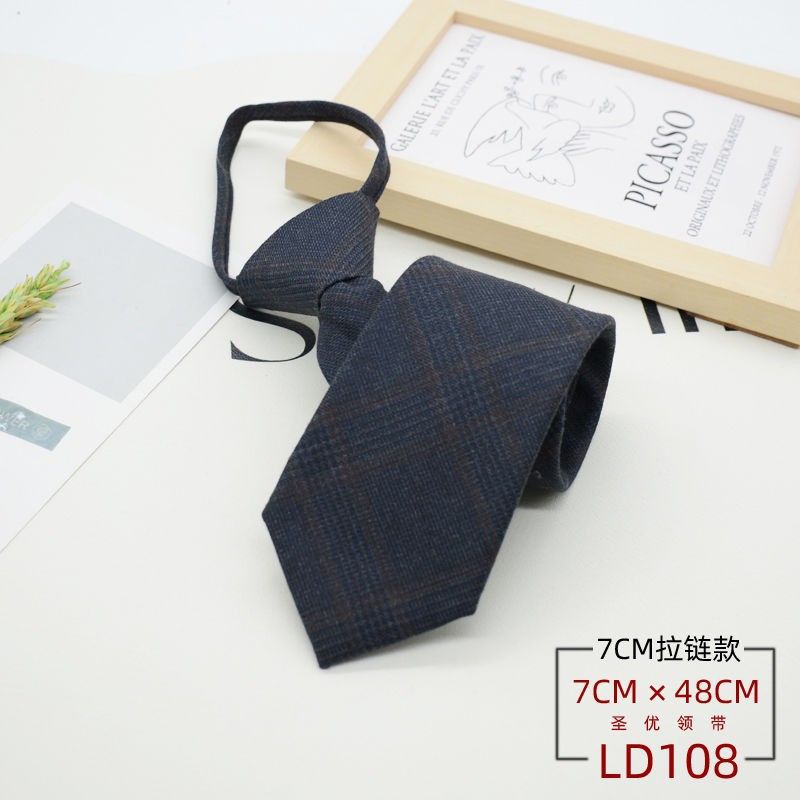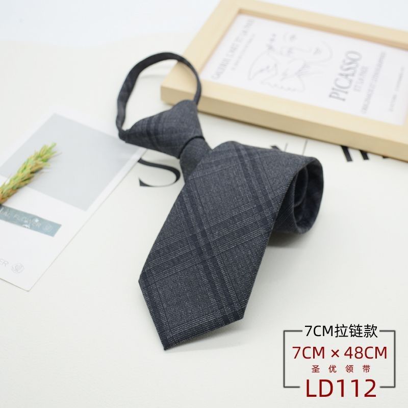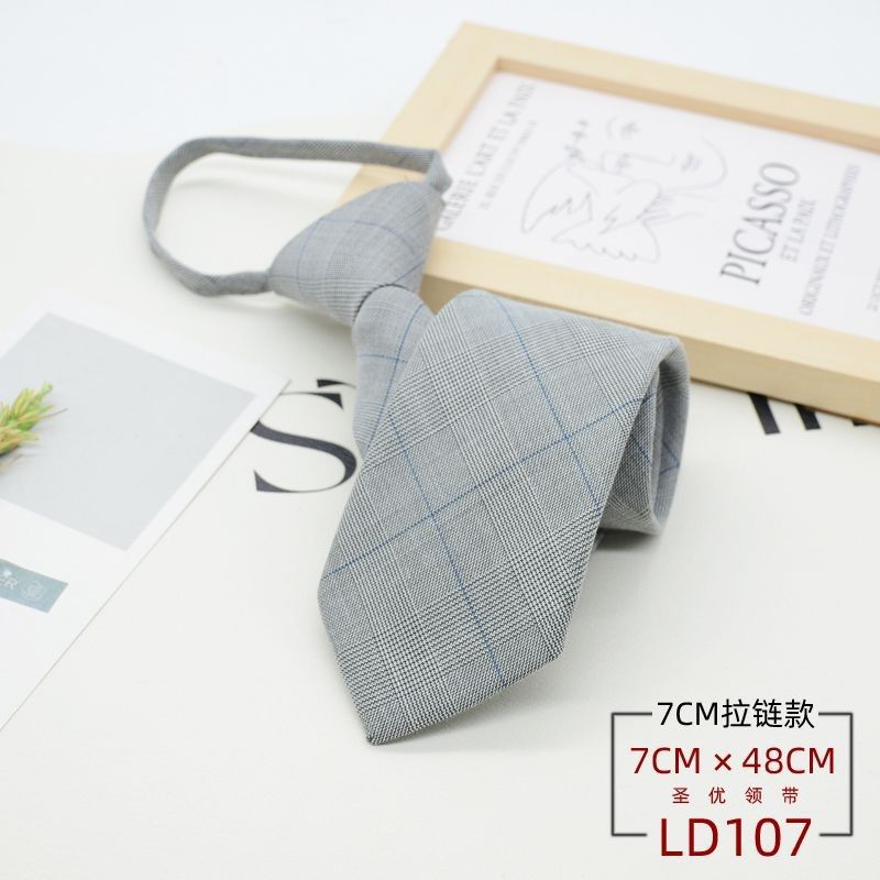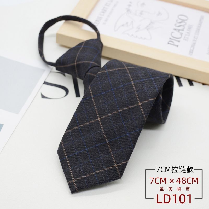 넥타이 남성 정장 한국식 영국 신사 7CM 매듭없는 지퍼 게으른 사람들을 위한 편리한 원풀업 비즈니스웨어 체크무늬