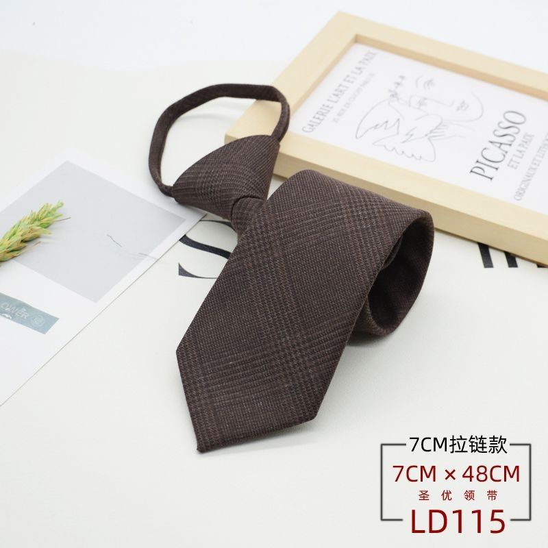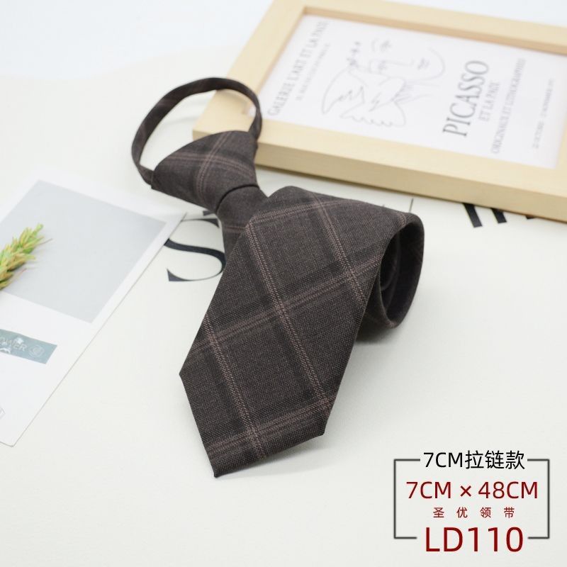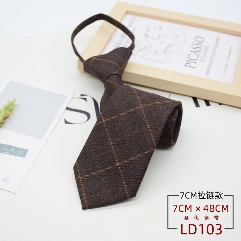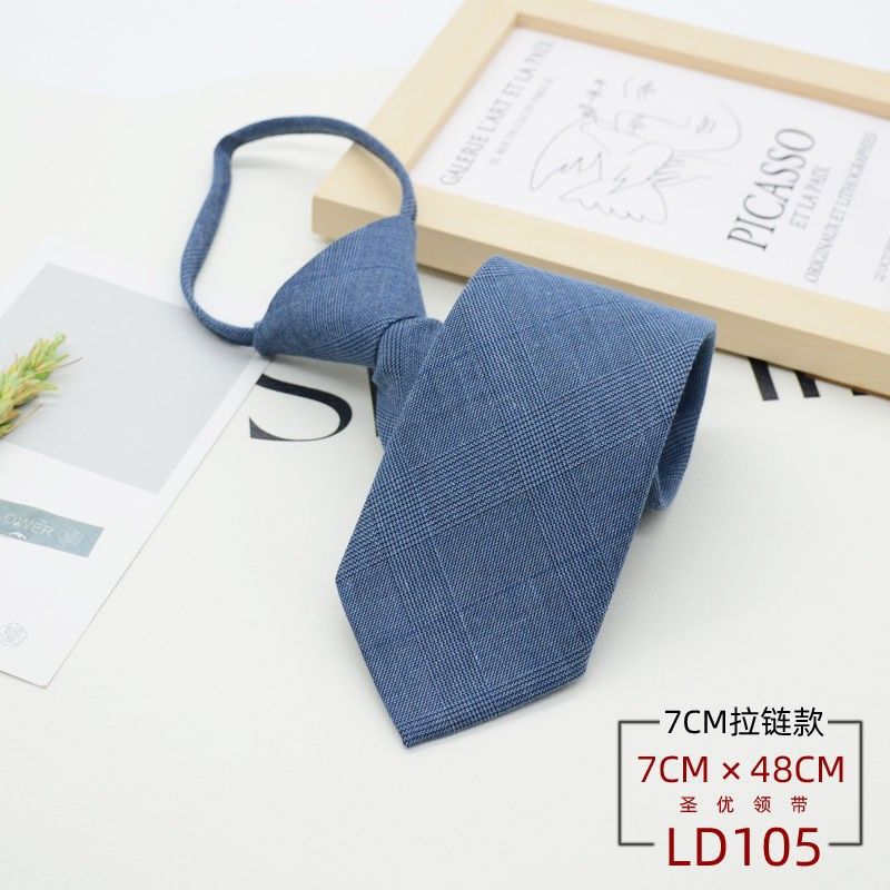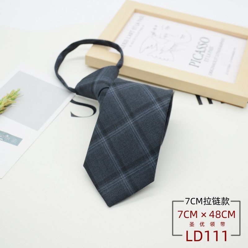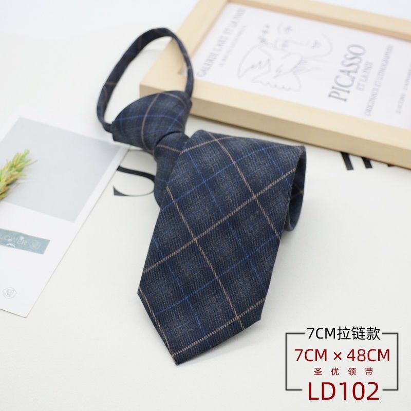 넥타이 남성 정장 한국식 영국 신사 7CM 매듭없는 지퍼 게으른 사람들을 위한 편리한 원풀업 비즈니스웨어 체크무늬