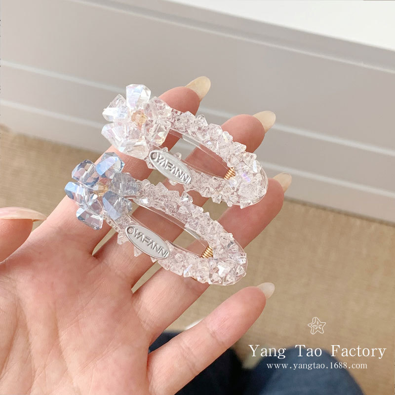 한국 스타일 크리스탈 플로렛 헤어핀 여성 스위트 인 깨진 헤어 뱅 사이드 헤어핀 클립 절묘한 덕빌 클립 헤어 액세서리