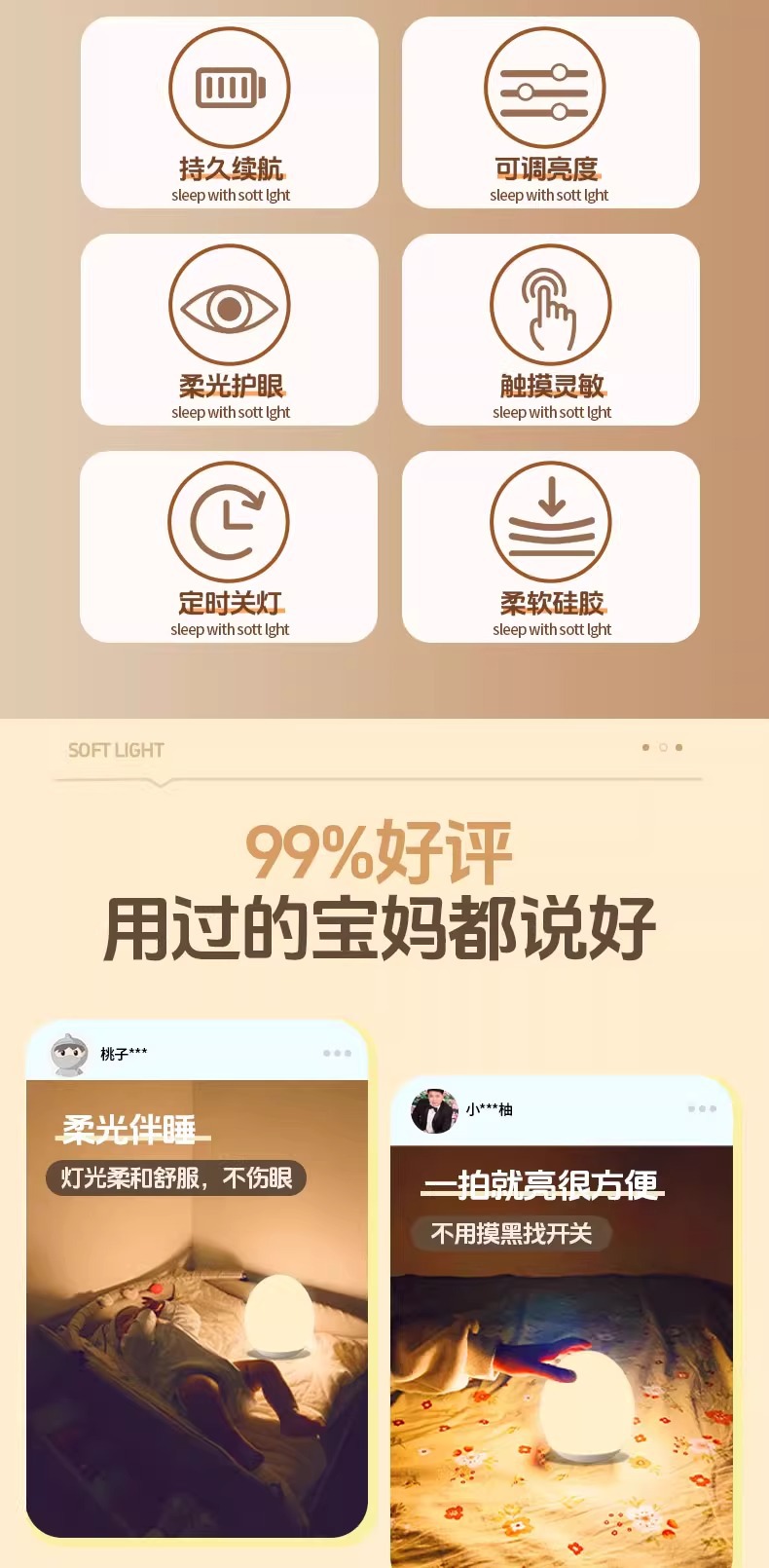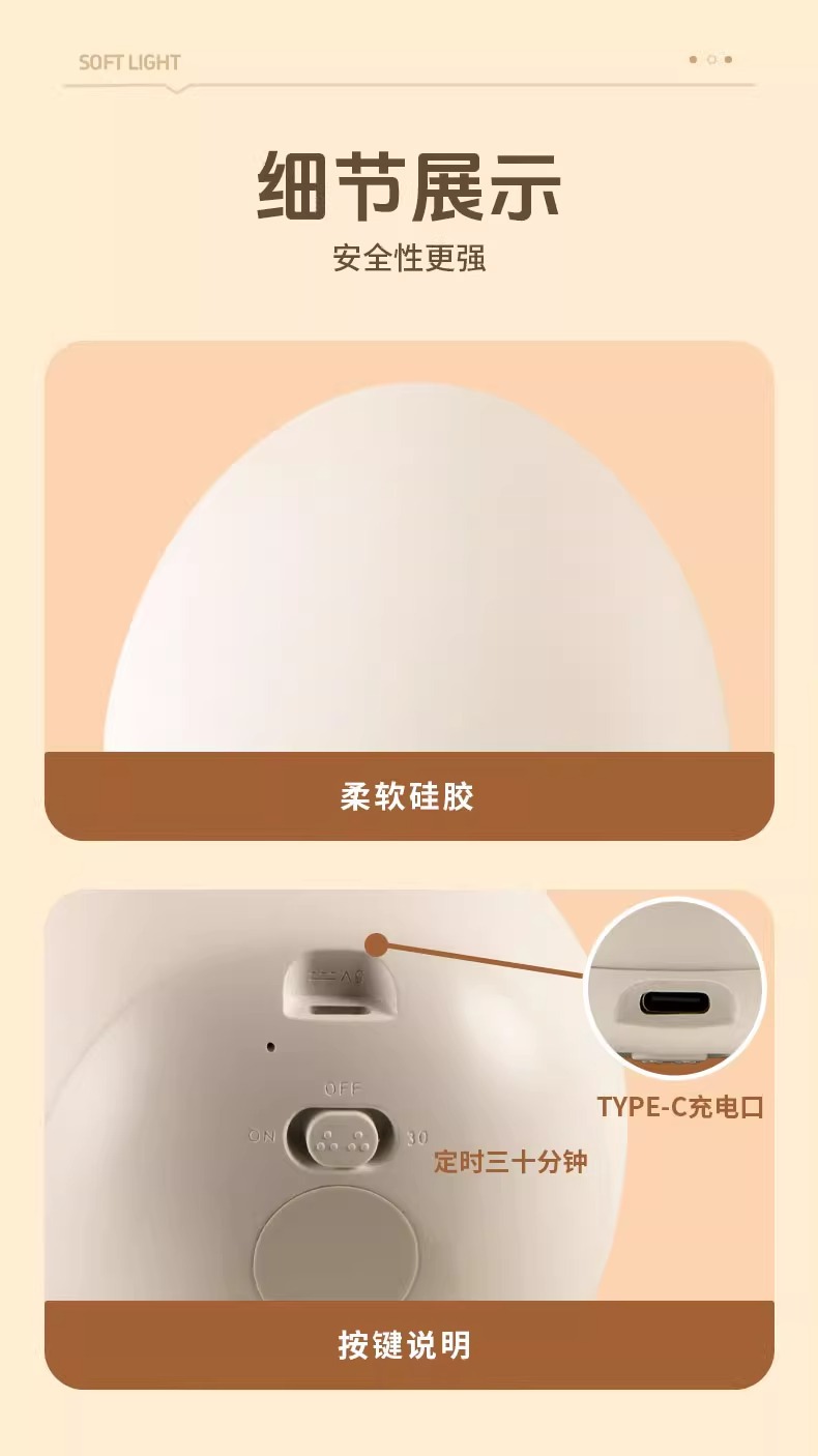 • 행운의 달걀 [플러그인 모델] 부드럽고 따뜻한 빛 + 즉시 밝아짐 + 3단계 밝기 + 데이터 케이블