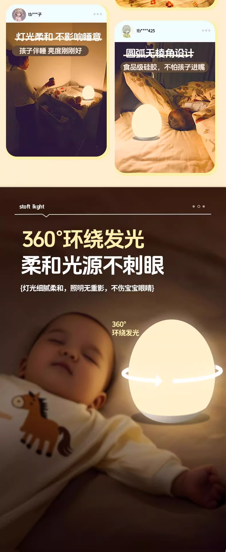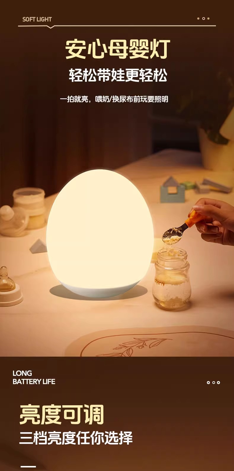 • 행운의 달걀 [충전식 및 플러그인] 부드럽고 따뜻한 빛 + 즉시 조명 + 3단계 밝기 + 데이터 케이블