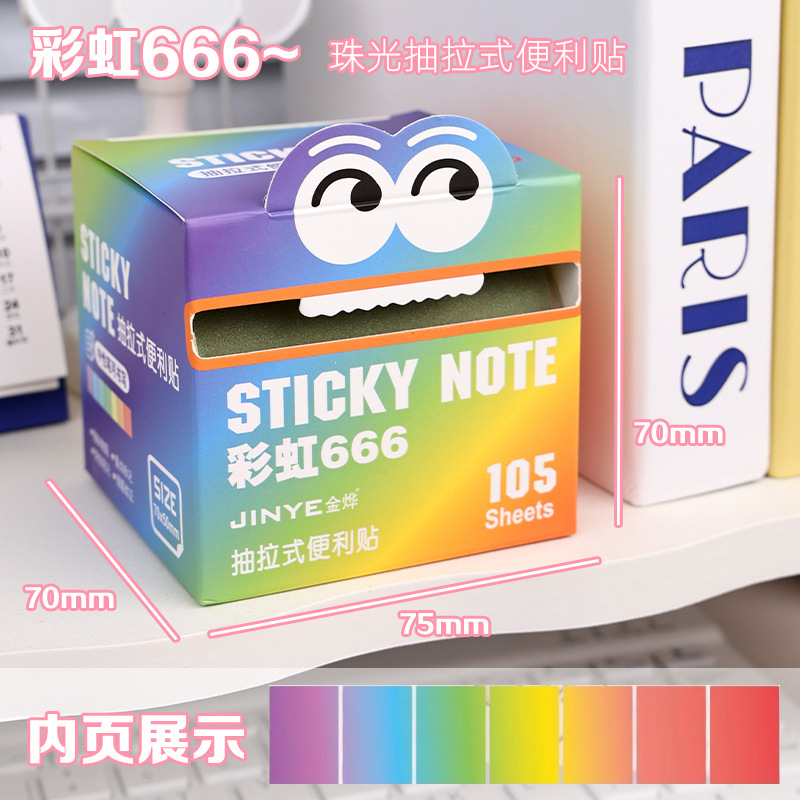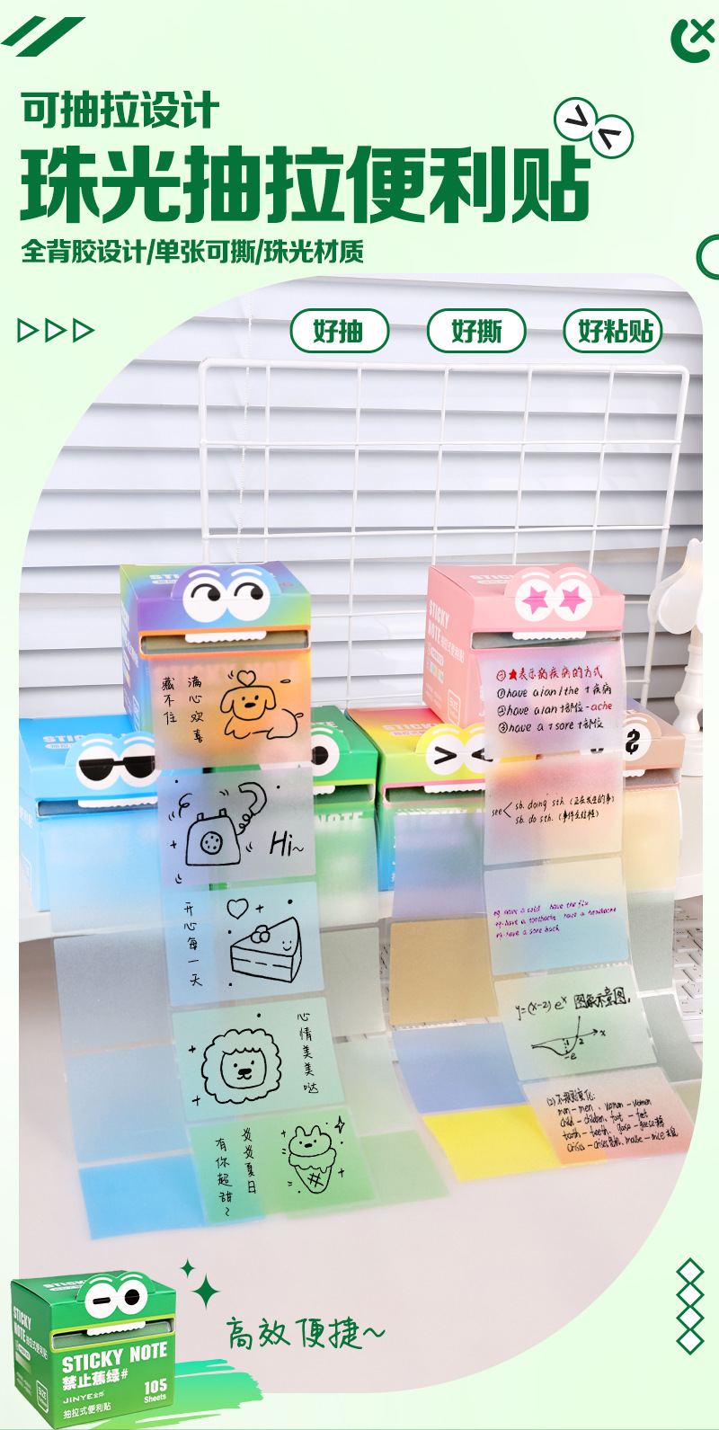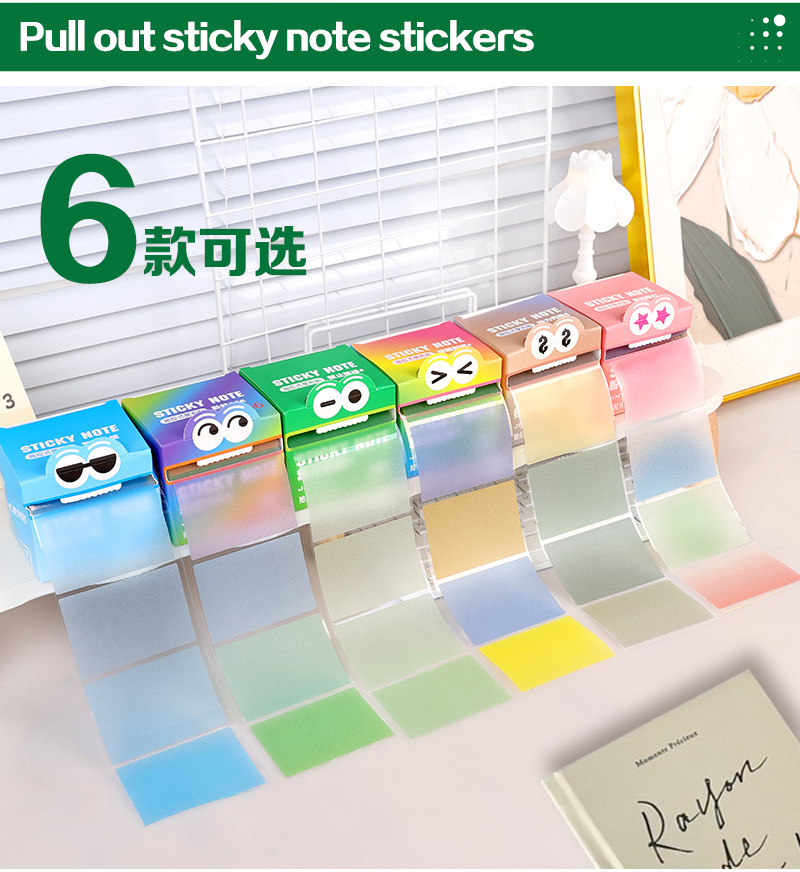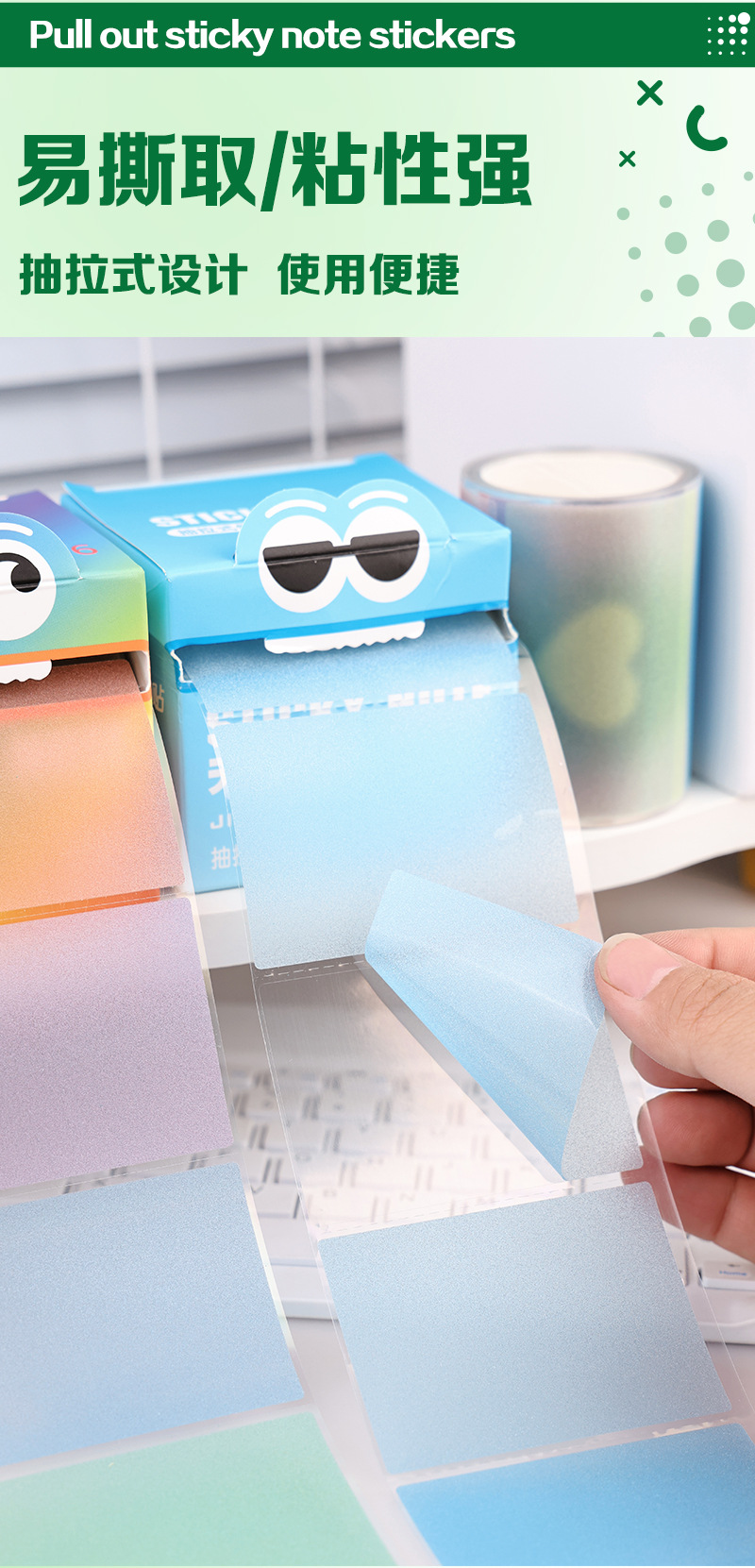 그라데이션 풀아웃 도파민 포스트잇 노트, 투명 반투명 진주광택 소재, 고급스러운 찢어지는 노트, 흔적 없음스토어 가기