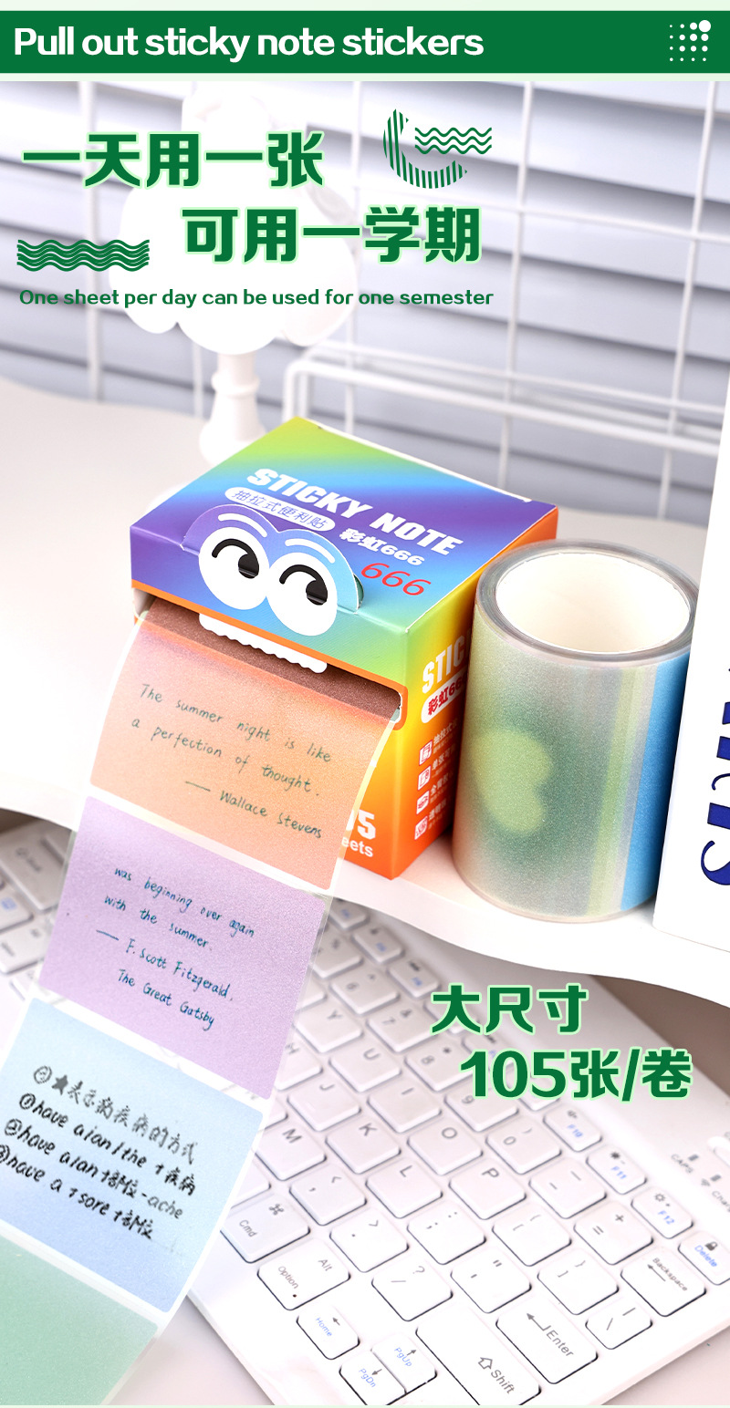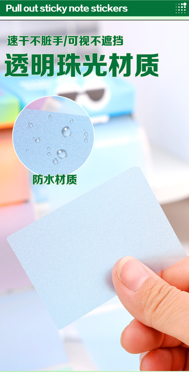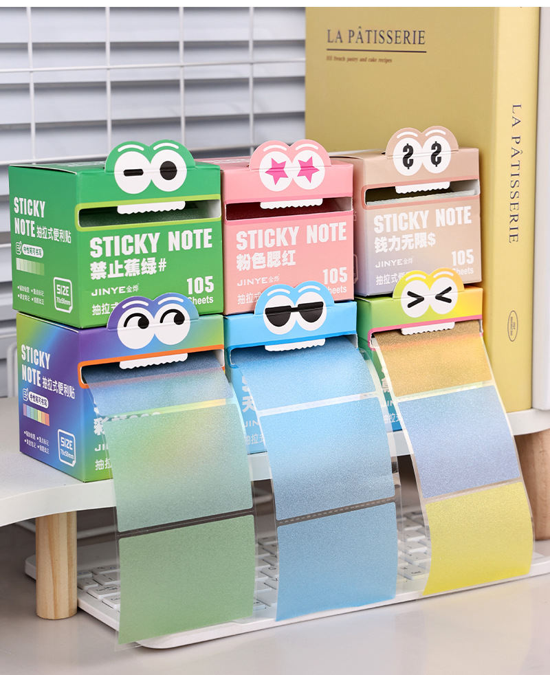 그라데이션 풀아웃 도파민 포스트잇 노트, 투명 반투명 진주광택 소재, 고급스러운 찢어지는 노트, 흔적 없음스토어 가기