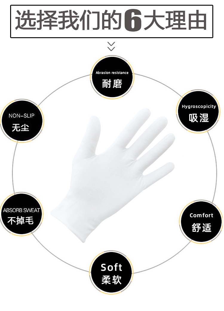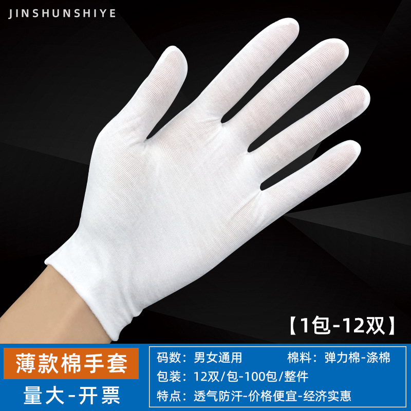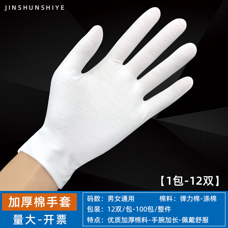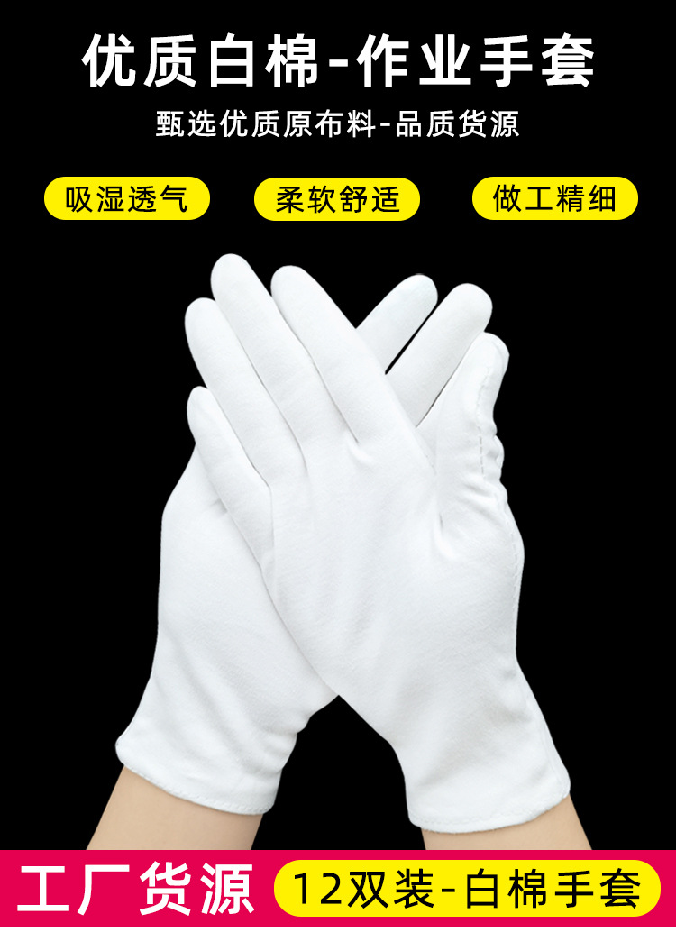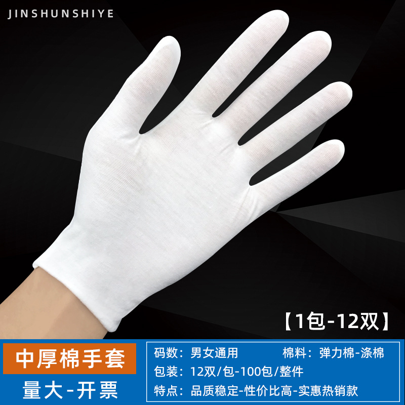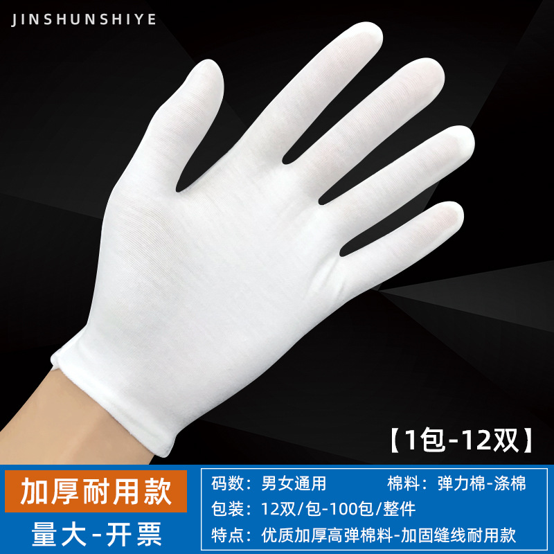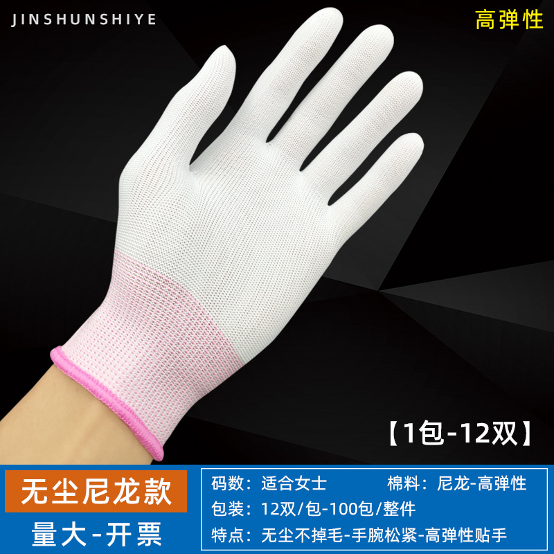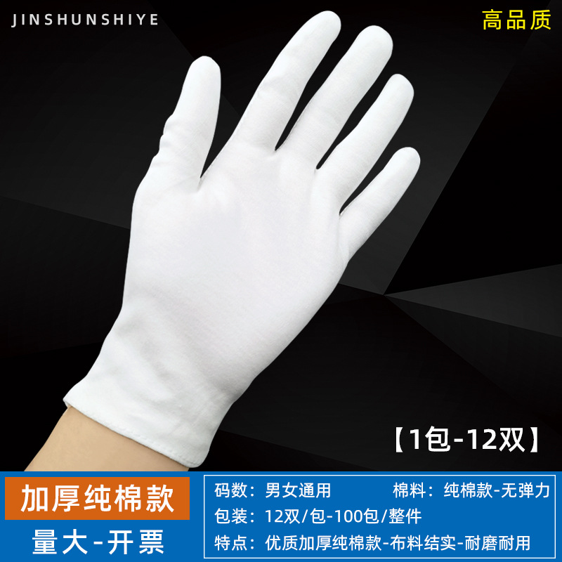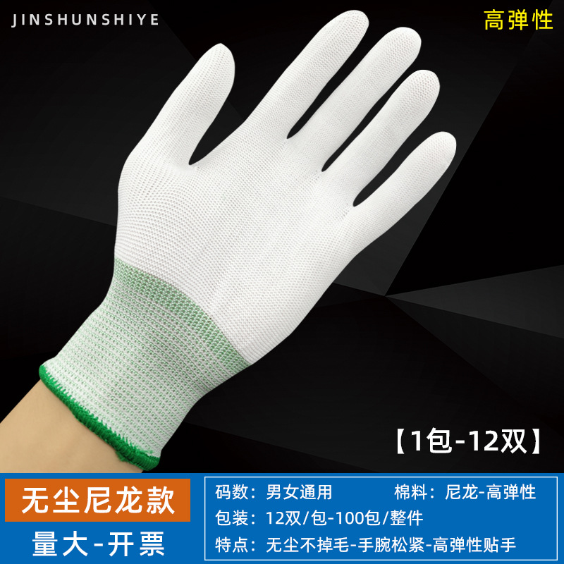 흰색 장갑 순면 얇은 두꺼운 내마모성 미끄럼 방지 노동 보호 산업 작업 나일론 예절 문화 장난감 정전기 방지 장갑스토어 가기
