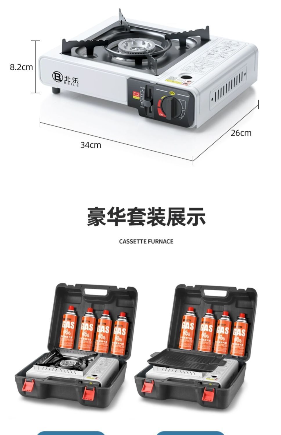 • 겸용 방지 [배터리 수명] 스토브 + 여행 가방 + 가스 8개 + 링