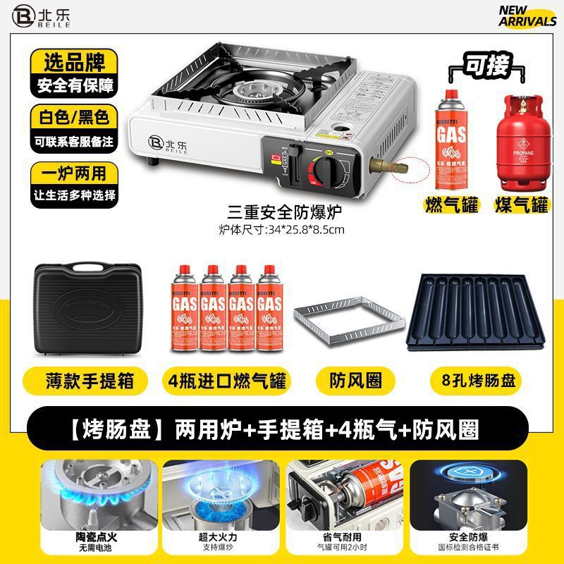 • [구운 소시지 판매점] 겸용 방지 + 상자 + 가스 4개 + 방풍 링