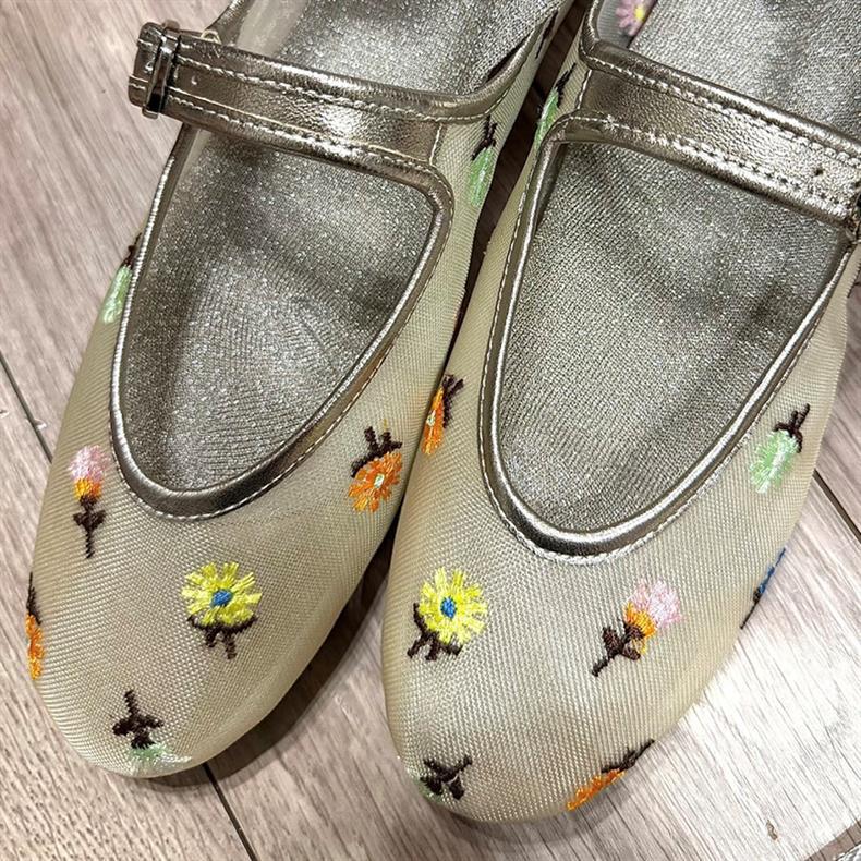 스팟상품! 여성을위한 일본 틈새 자수 메쉬 메리 제인 신발 여름 발레 플랫 스트랩 신발스토어 가기