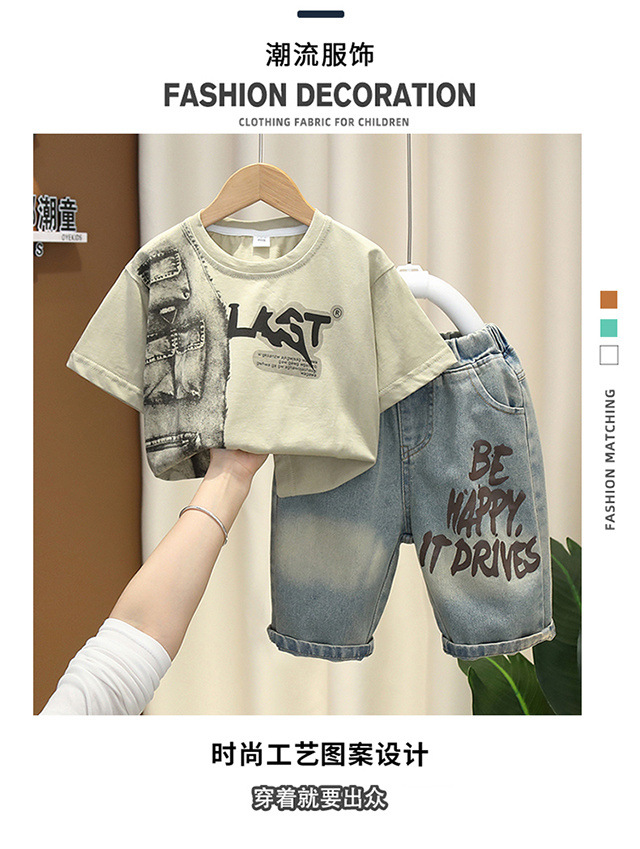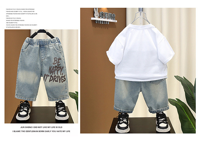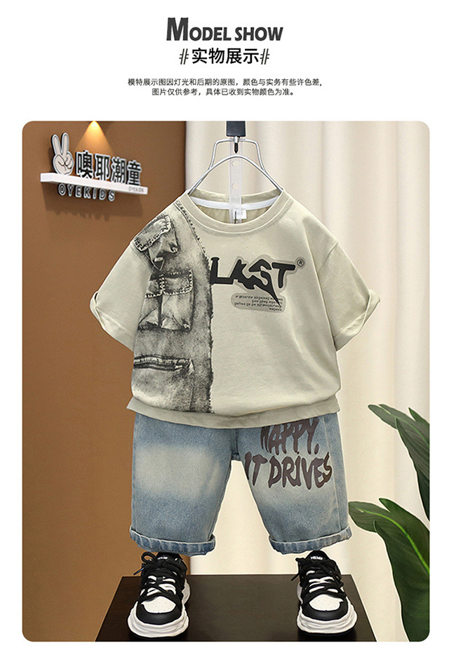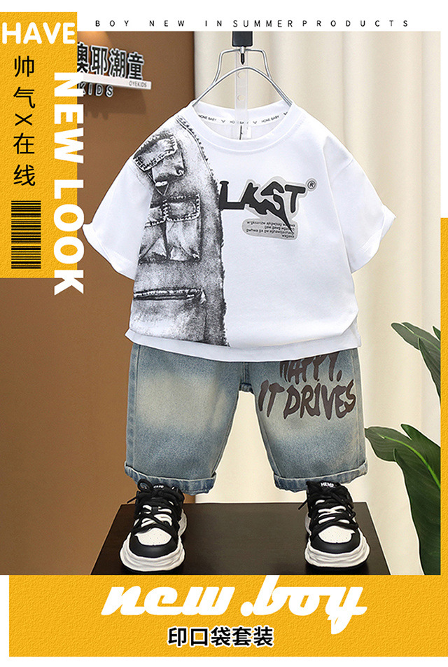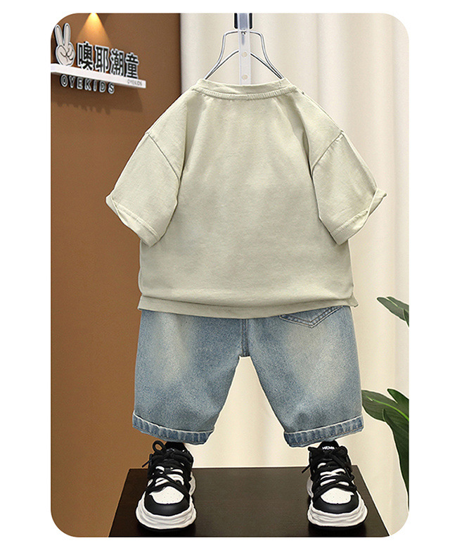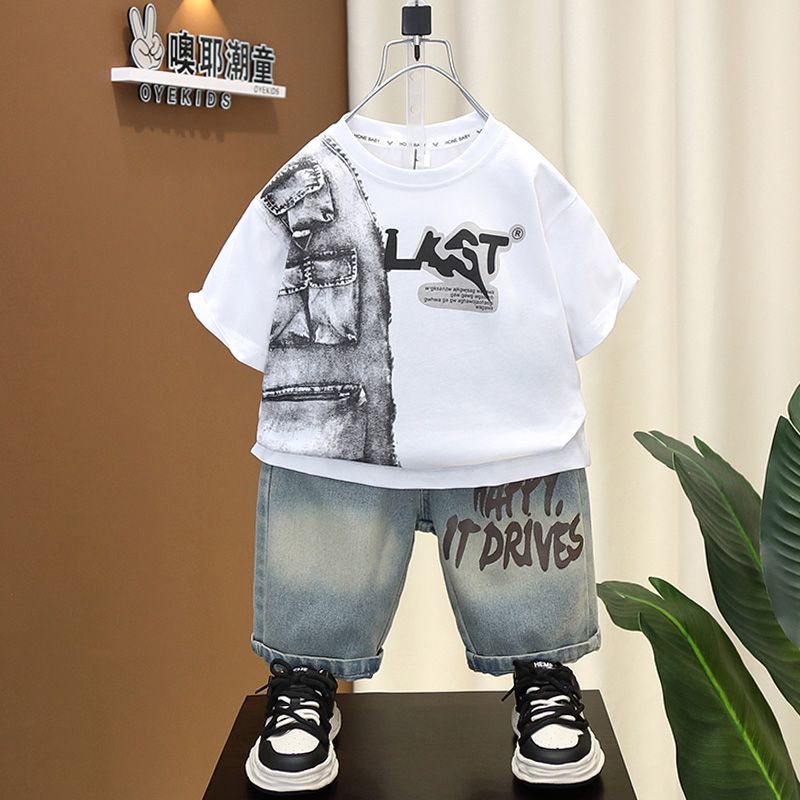 소년 여름 정장 2025 새로운 스타일 잘 생긴 어린이 반팔 옷 유행 아기 여름 얇은 투피스 세트스토어 가기