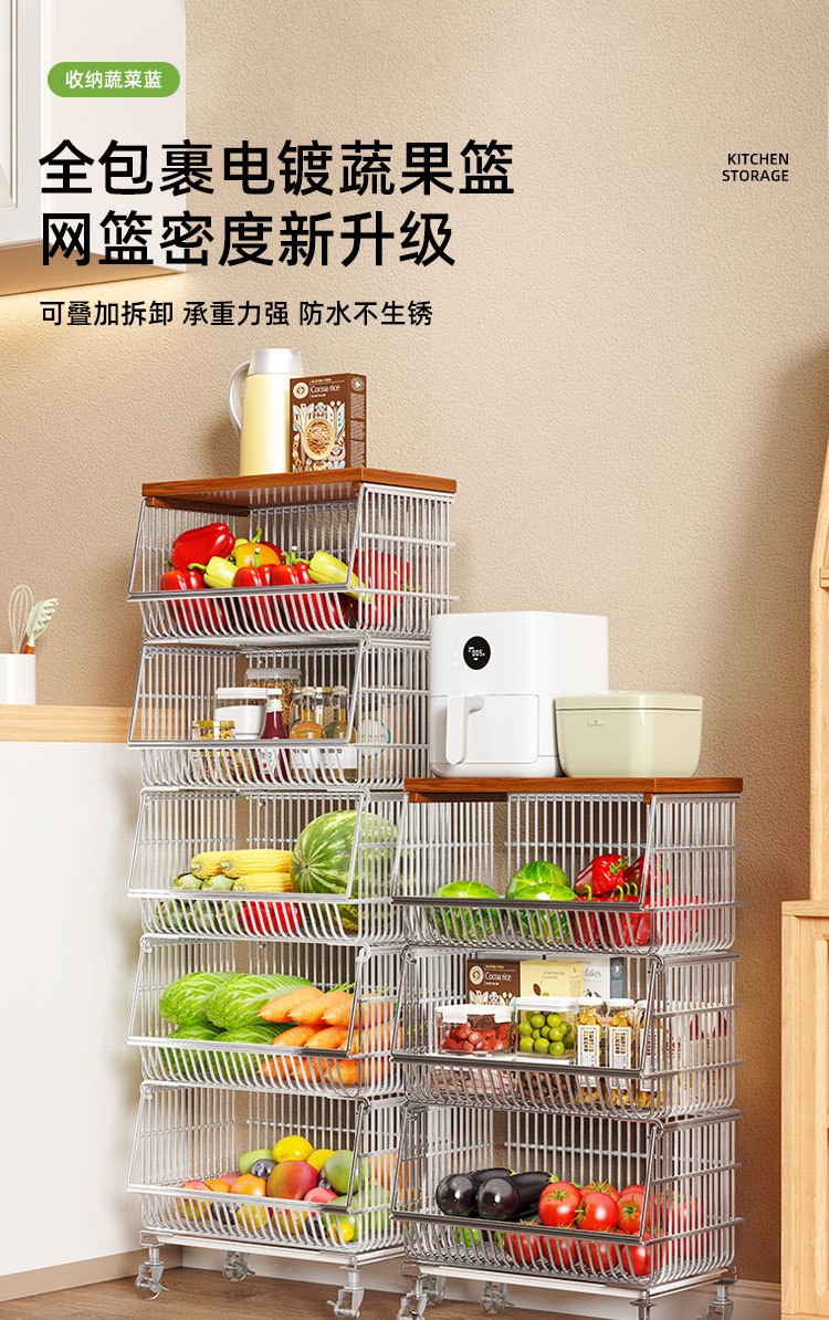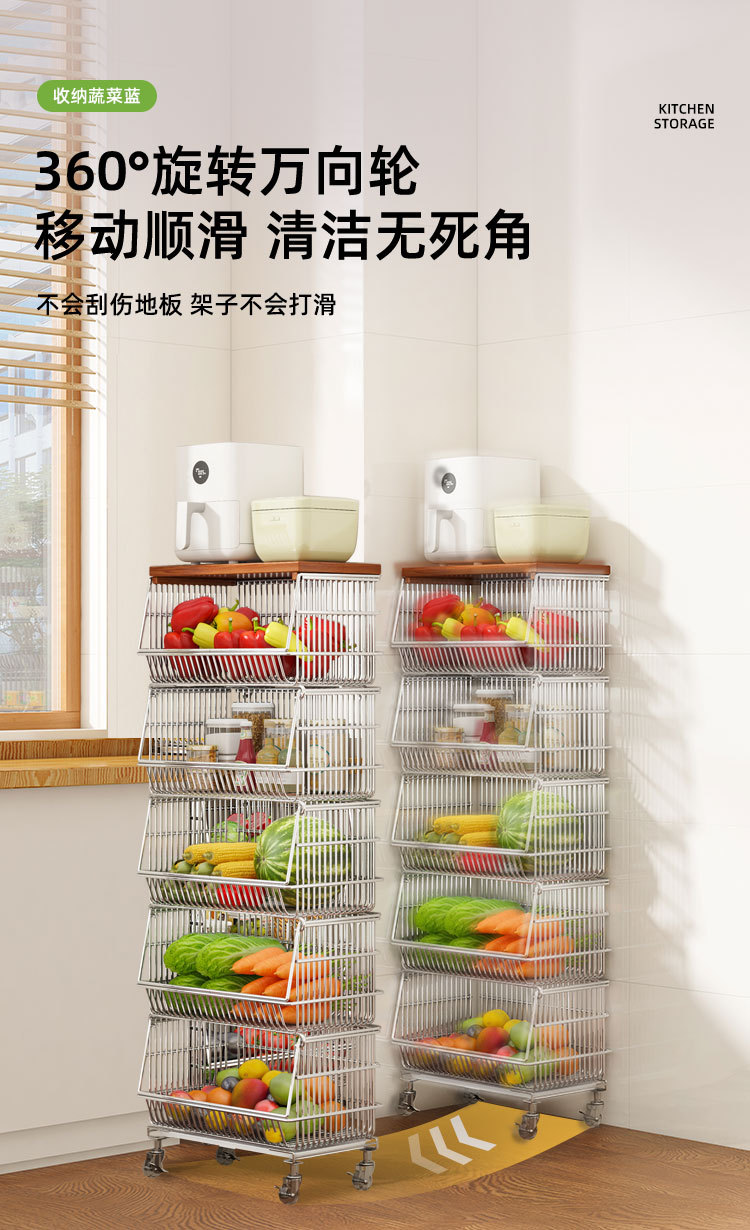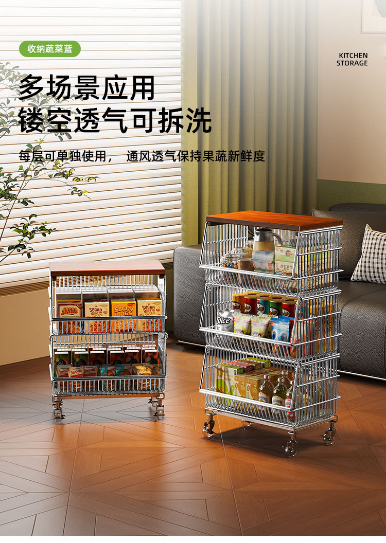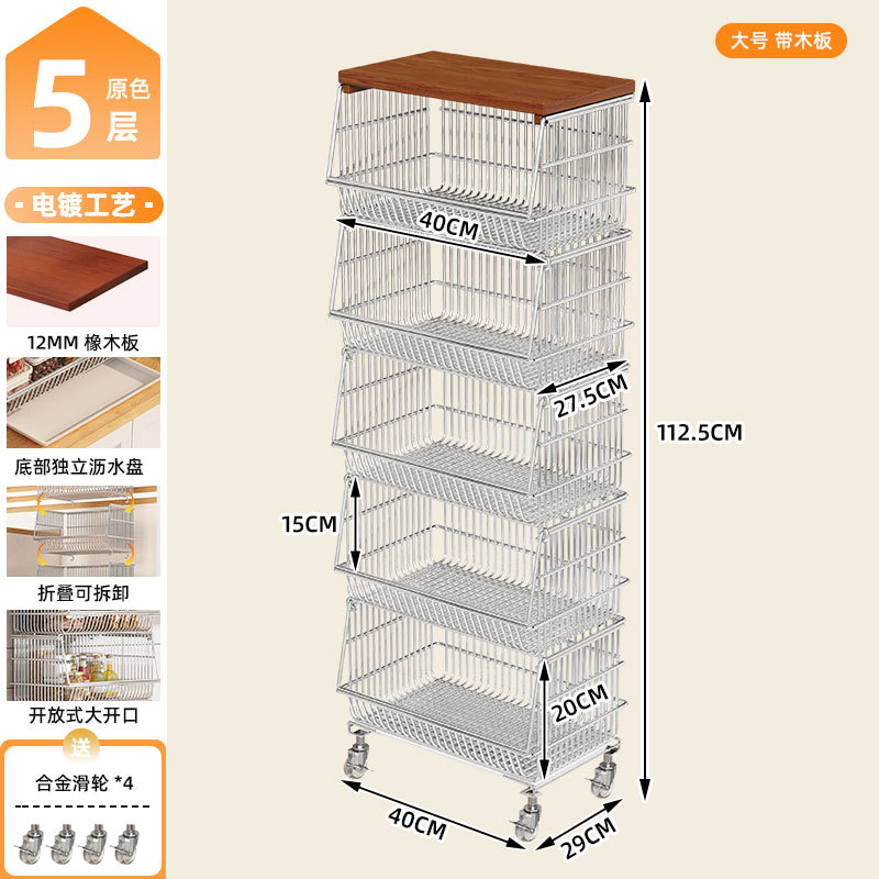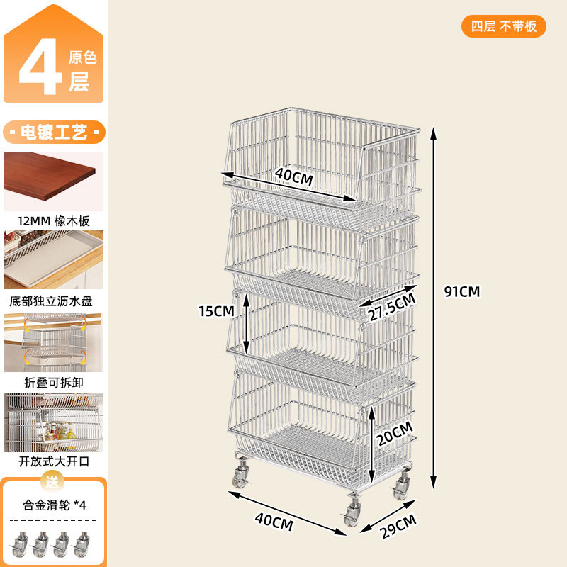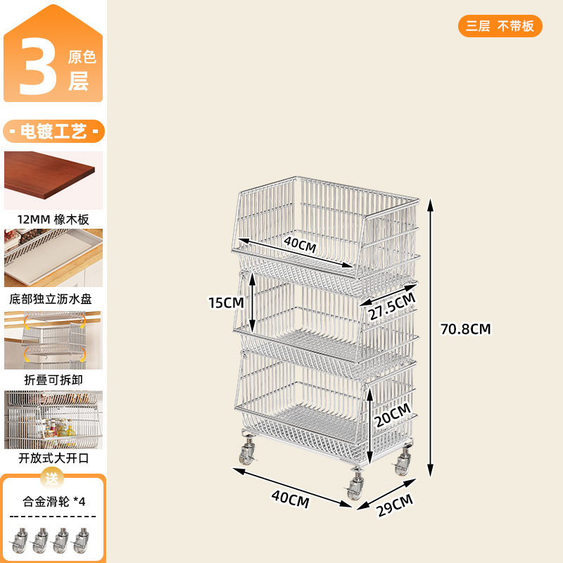 주방 계층화 된 보관 랙 바닥 서 야채 바구니 과일 및 야채 저장 바구니 가정용 다기능 스낵 카트