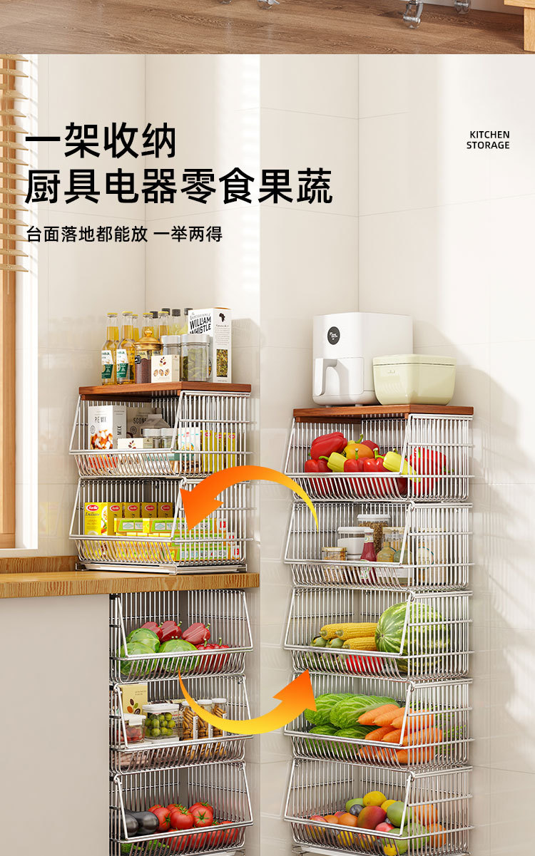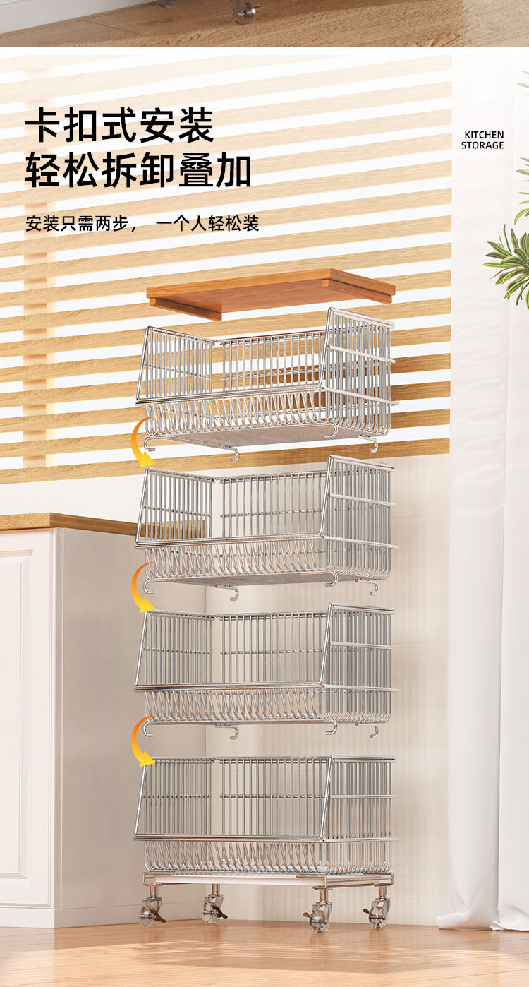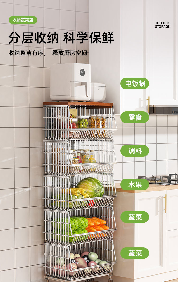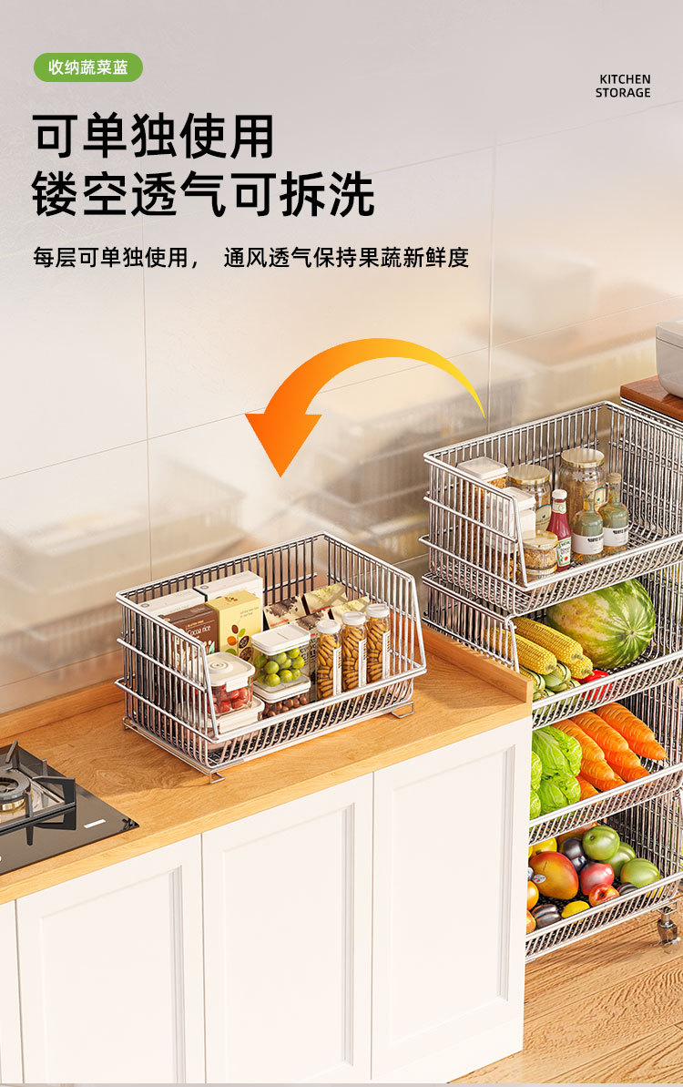 주방 계층화 된 보관 랙 바닥 서 야채 바구니 과일 및 야채 저장 바구니 가정용 다기능 스낵 카트