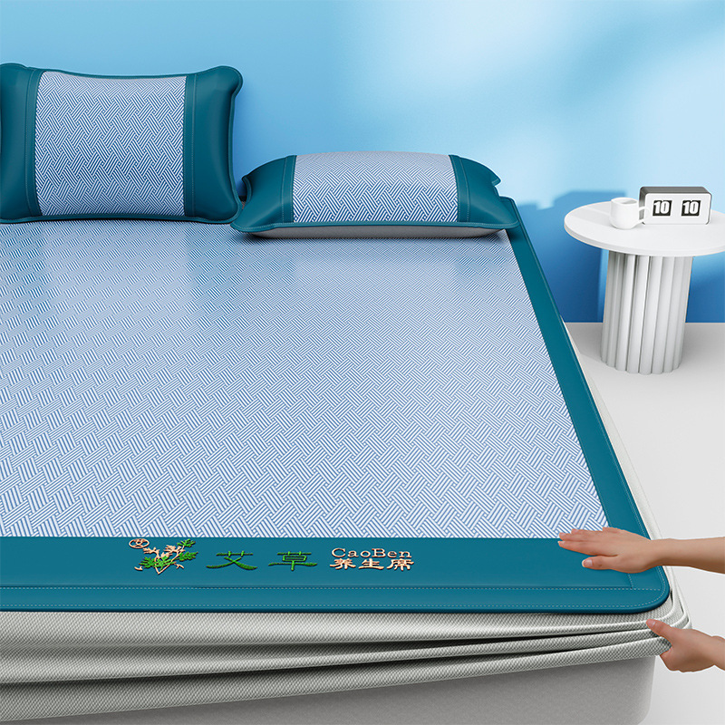 쑥 얼음 실크 매트 2025 새로운 여름 등나무 매트 기계 세탁 가능 학생 기숙사 싱글 대나무 매트 침대 시트