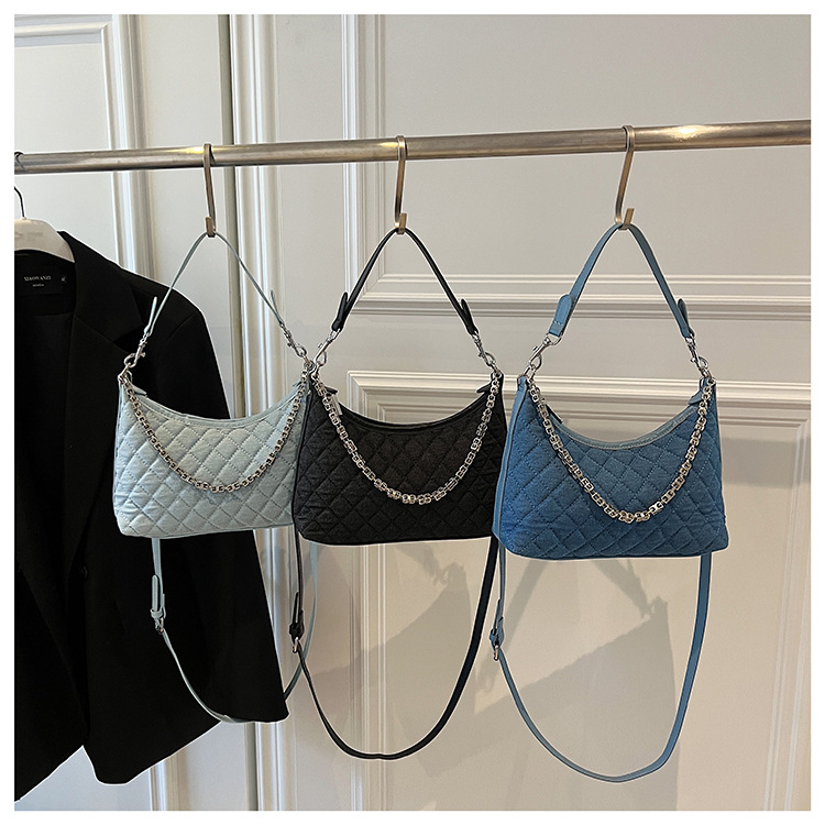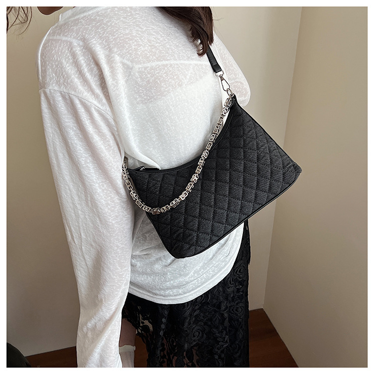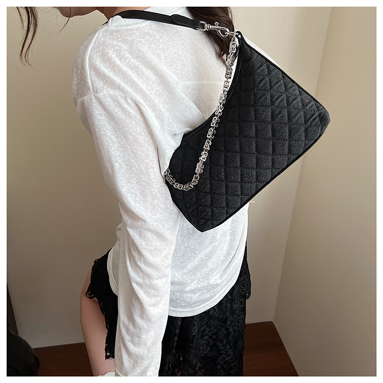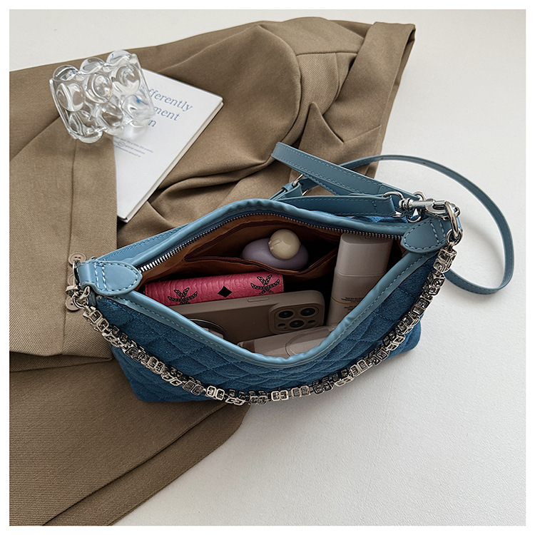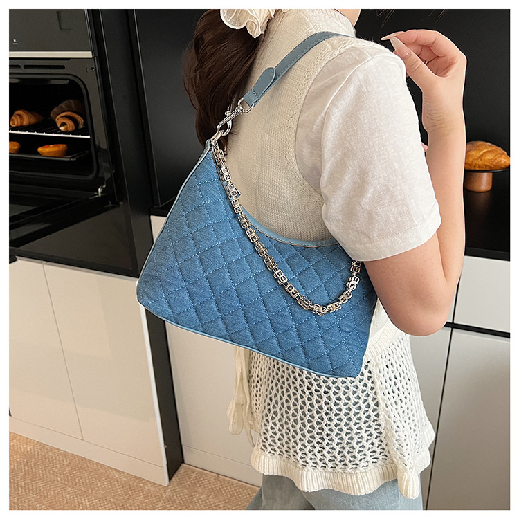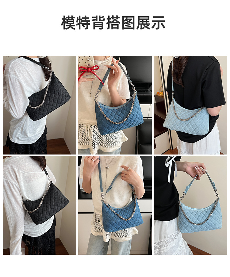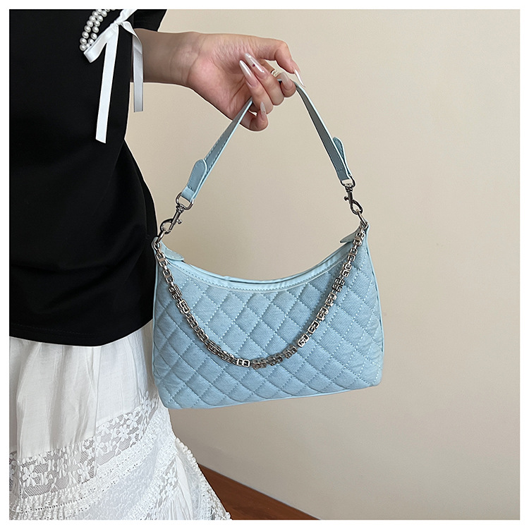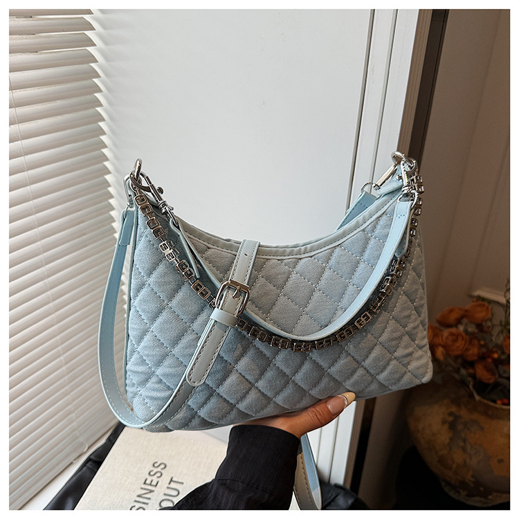 여성 겨드랑이를 위한 고급스러운 작은 향기로운 마름모 체인 백 2025 새로운 인기 데님 다용도 싱글 숄더 크로스바디 백