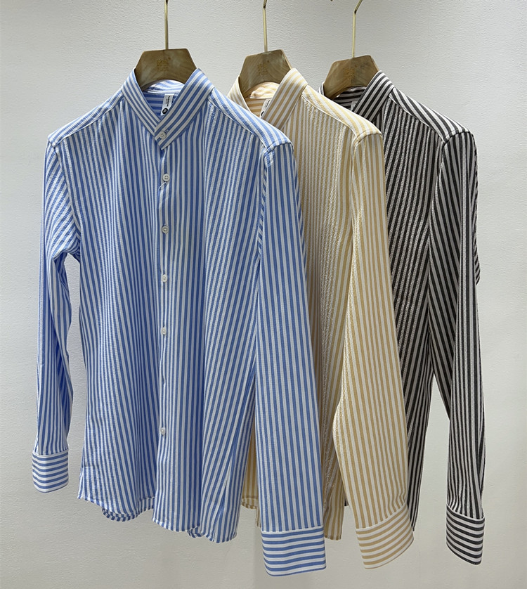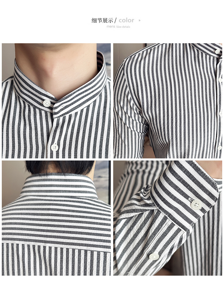 남성용 새로운 중국 스타일 캐주얼 스트라이프 긴팔 셔츠 슬림 한국 스타일 라이트 비즈니스 남성 전문 셔츠 시어서커 ​​크로스보더스토어 가기