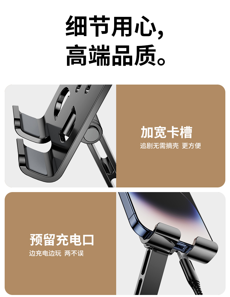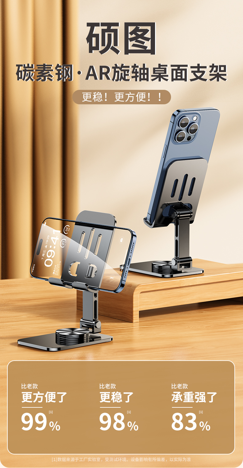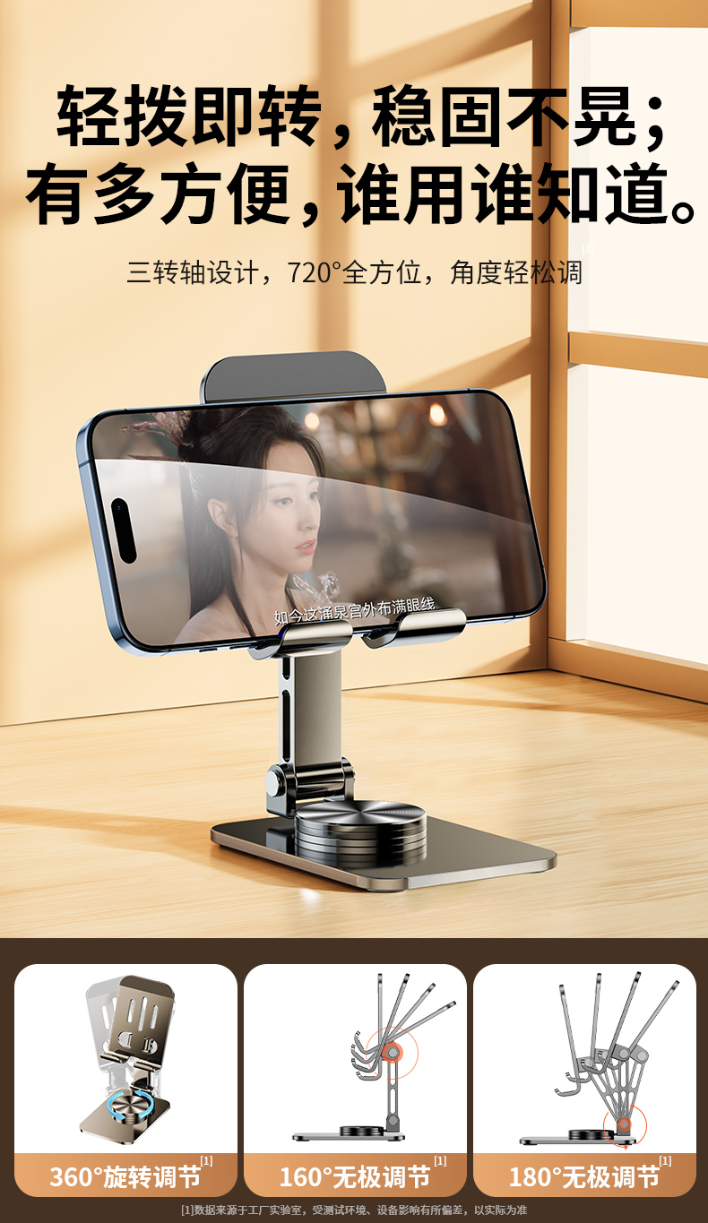 • [순합금.블랙] 720°회전 및 접이식丨휴대폰 및 태블릿용 범용