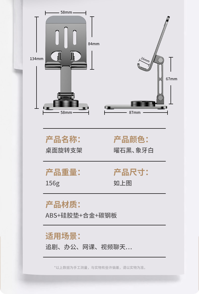 • [순합금.화이트] 720 ° 회전 및 접이식丨휴대폰 및 태블릿용 범용