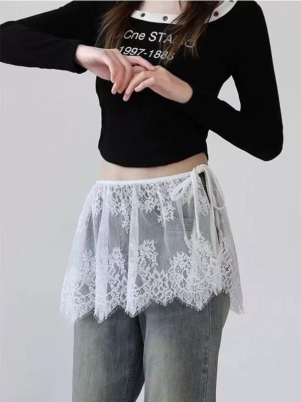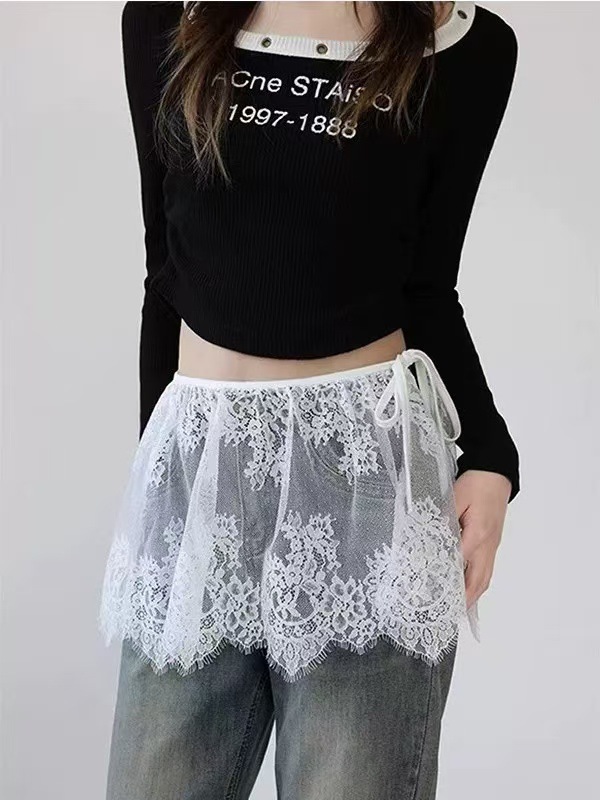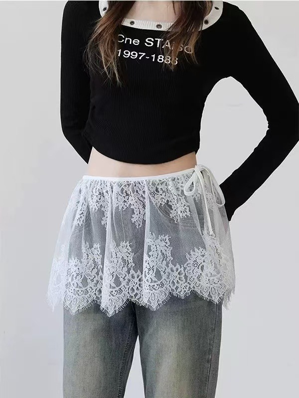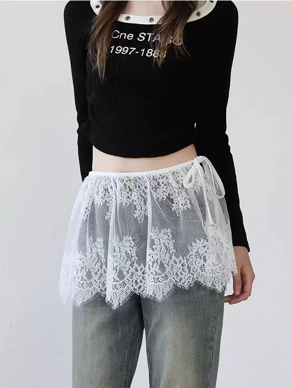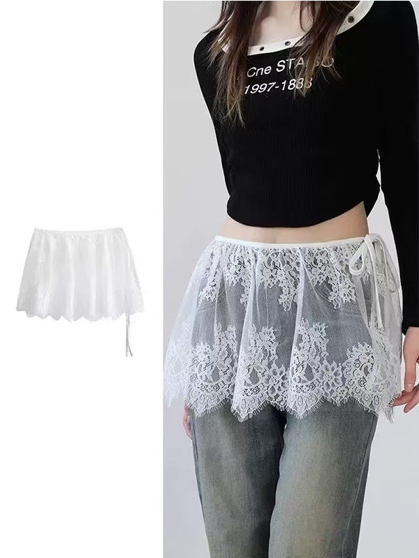 2025 새로운 스타일 패션 짧은 치마 방귀 커튼 프렌치 할로우 크롭 레이스 스커트 여자 올매치