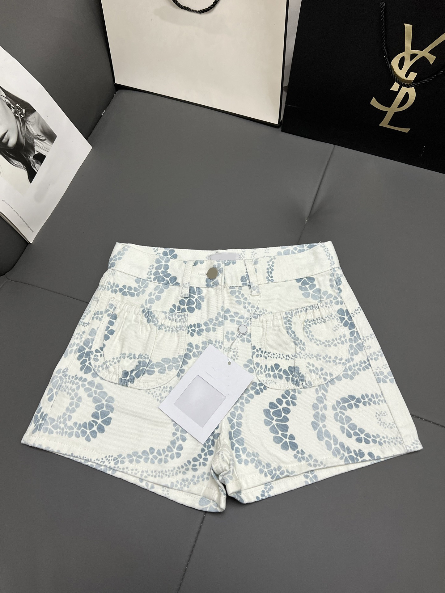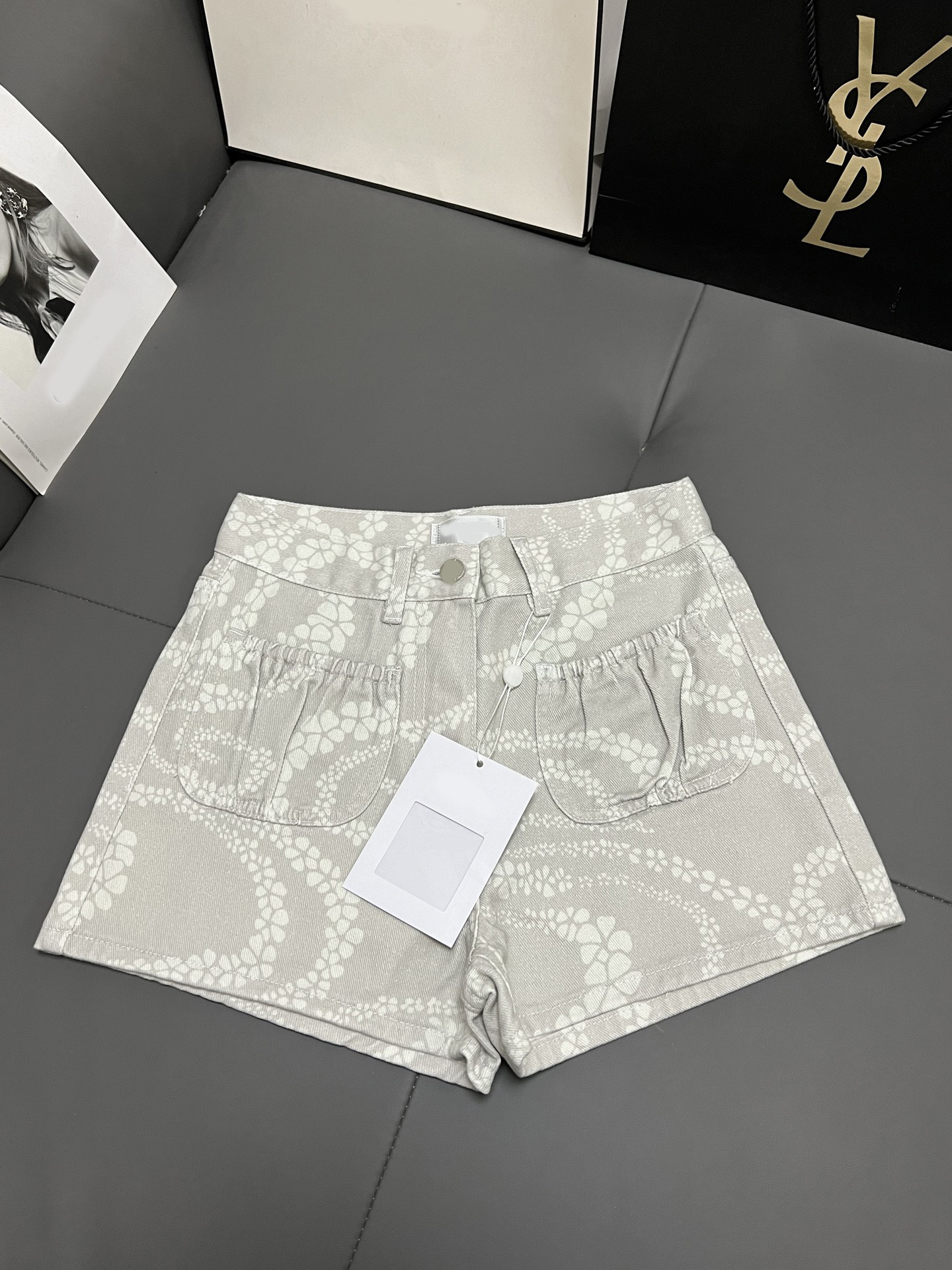 Nanyou 고급 [올바른 버전] Xiaoxiangfeng 꽃잎 물결 무늬 다용도 하이 웨이스트 슬리밍 핫 소녀 데님 반바지 여성용