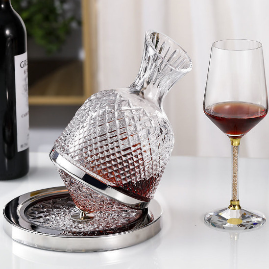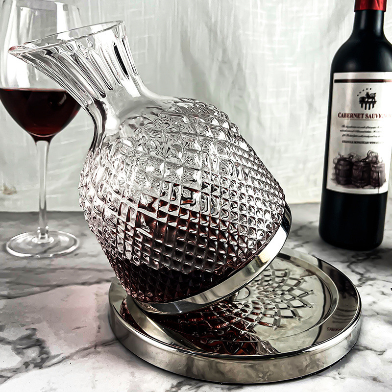 • [선물박스] 고급 실버 회전 디캔터 + 레드와인잔 2개