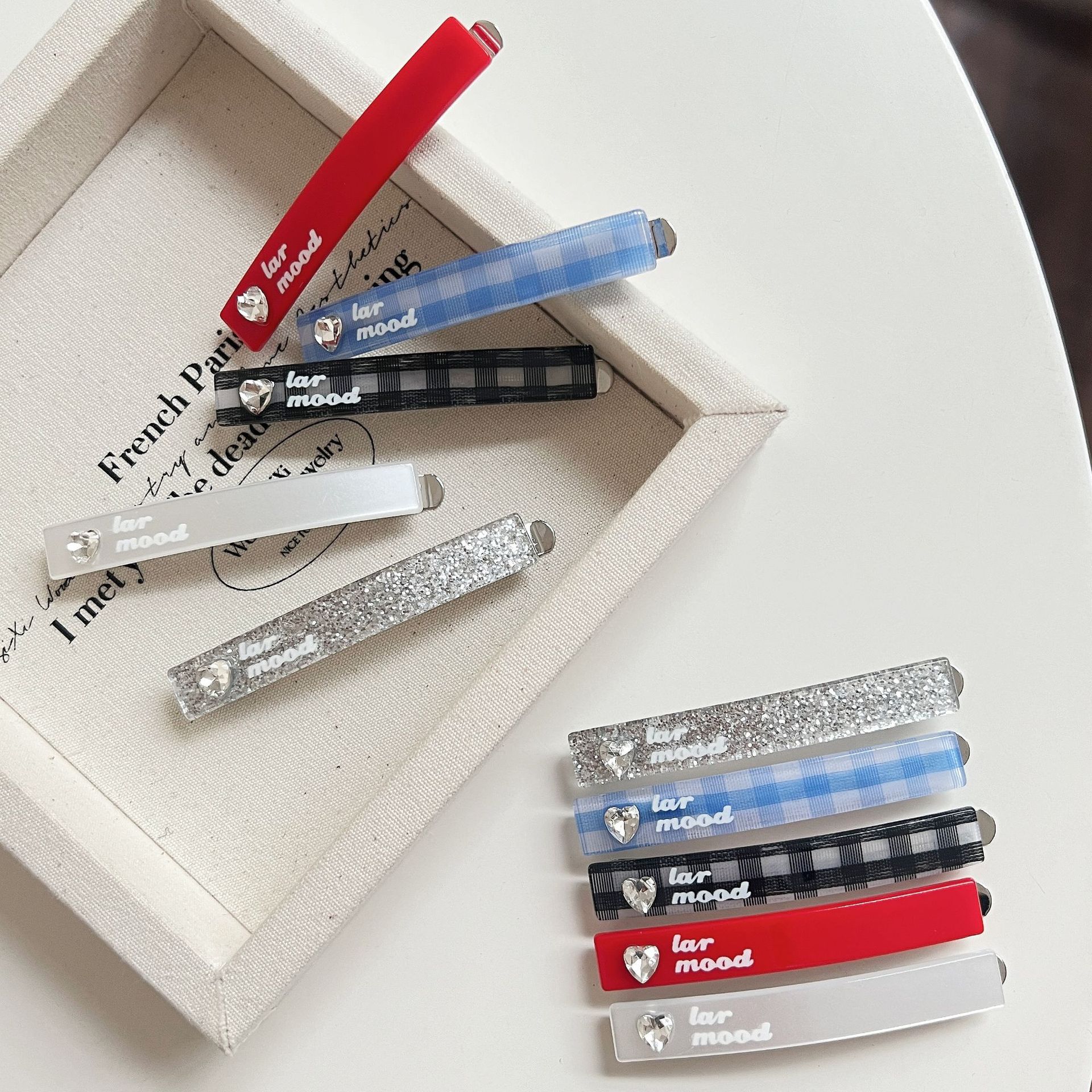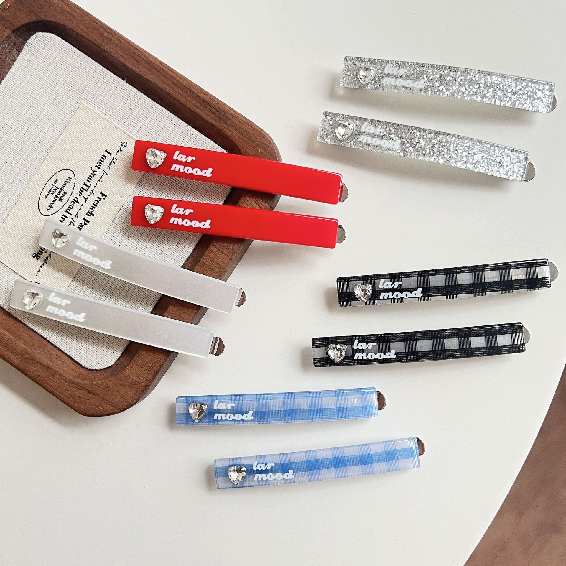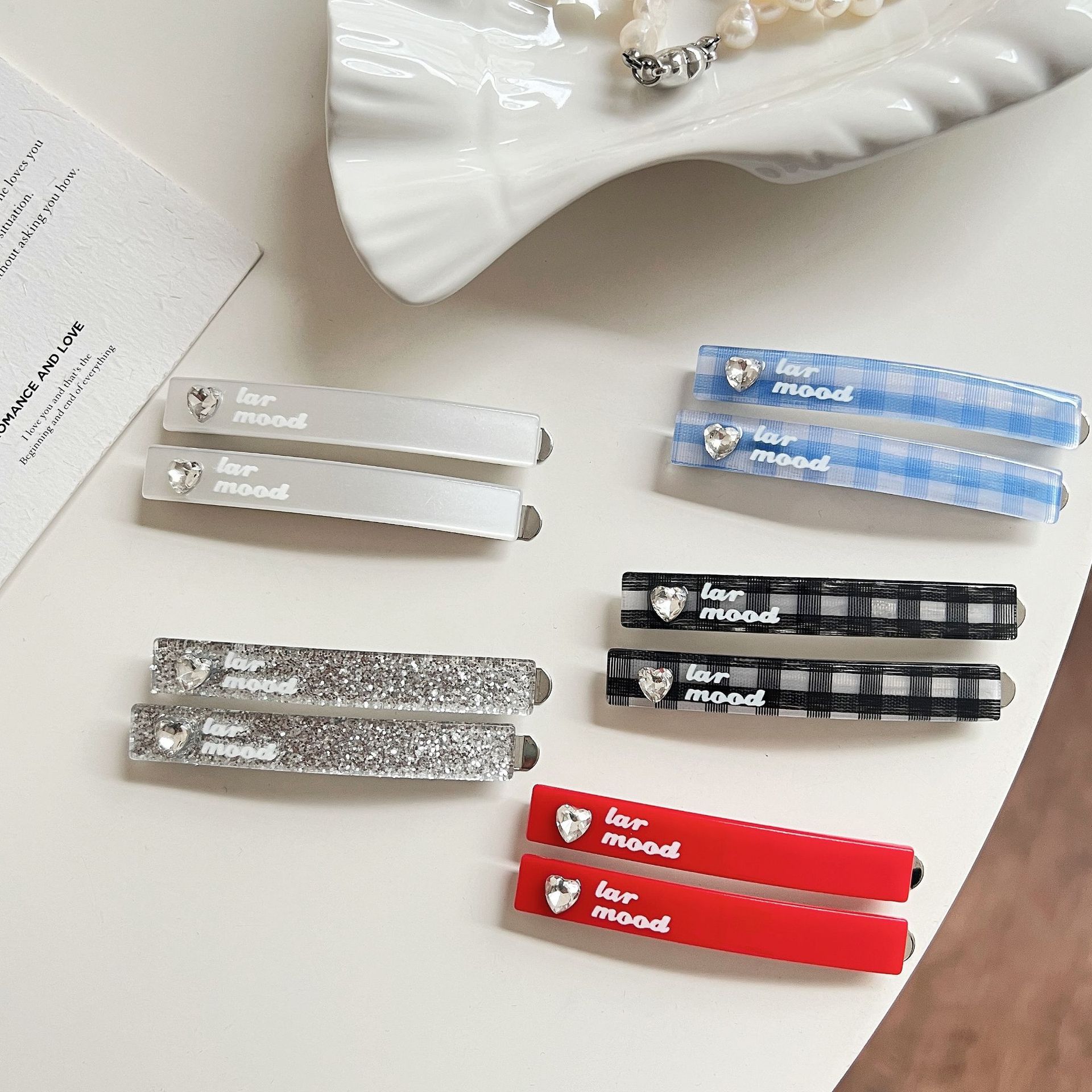 블루 체크무늬~반짝이는 다이아몬드 러브 아세테이트 머리핀 새로운 스타일의 작고 상큼하고 달콤한 기질의 사이드 클립 헤어 스타일러