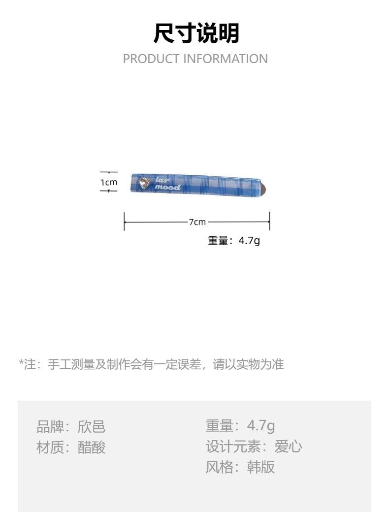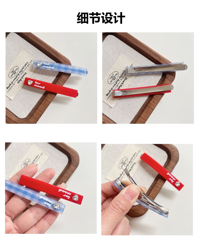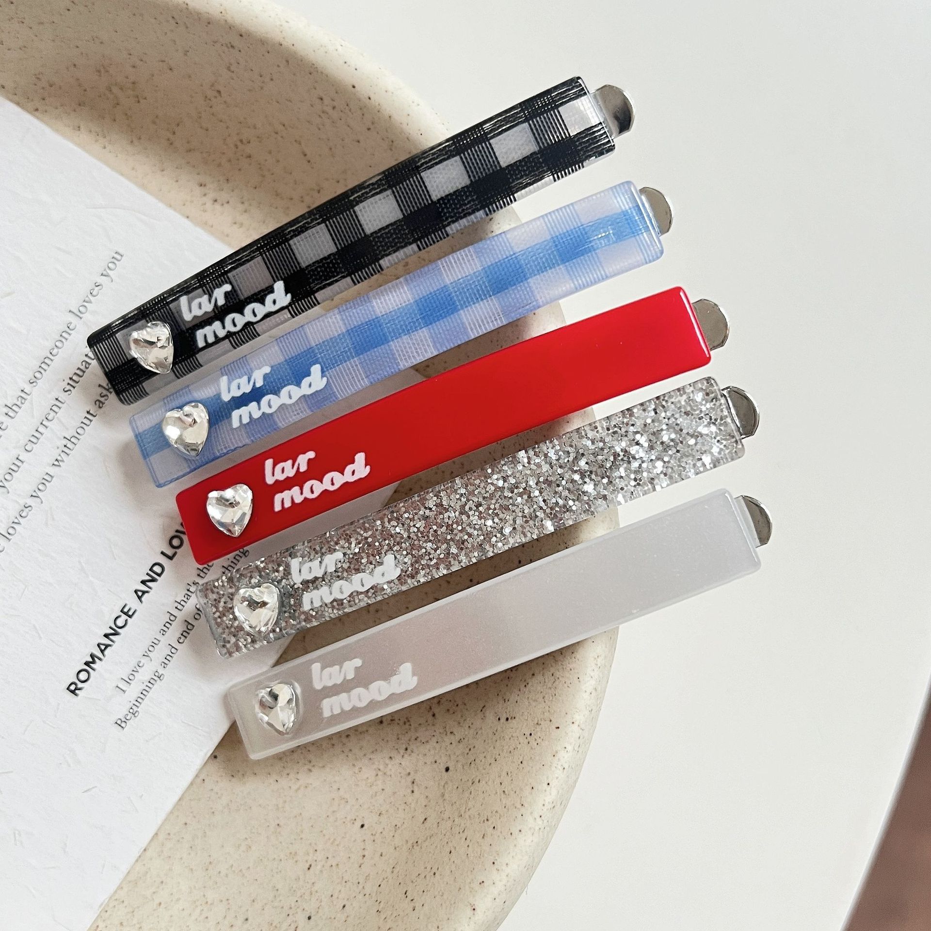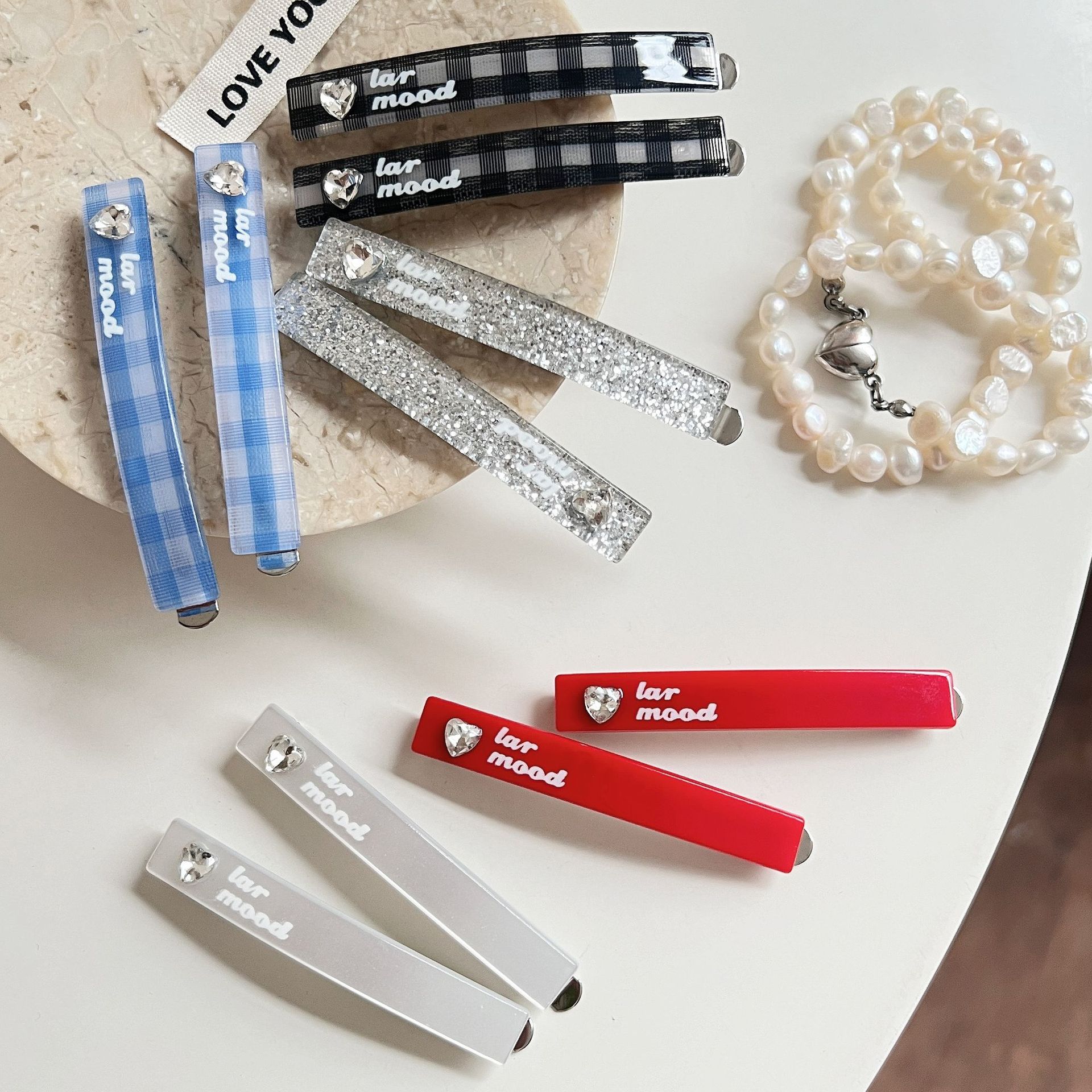 블루 체크무늬~반짝이는 다이아몬드 러브 아세테이트 머리핀 새로운 스타일의 작고 상큼하고 달콤한 기질의 사이드 클립 헤어 스타일러