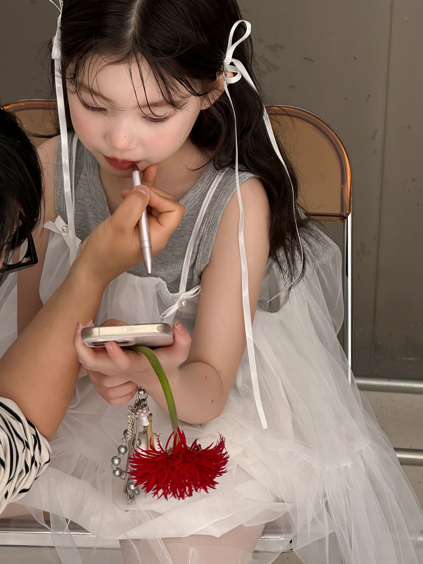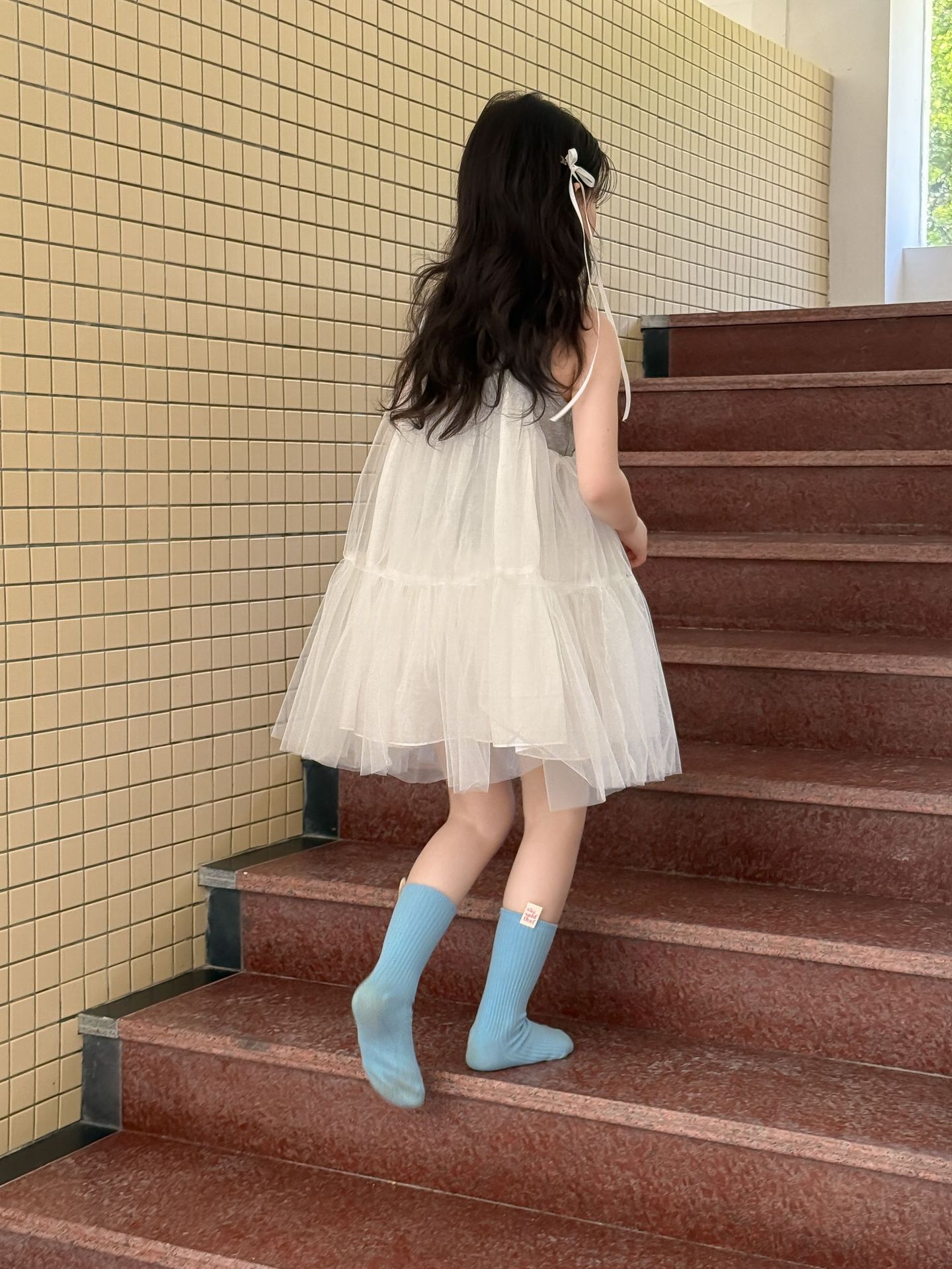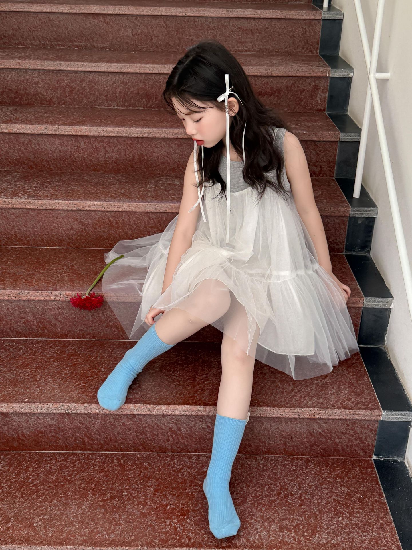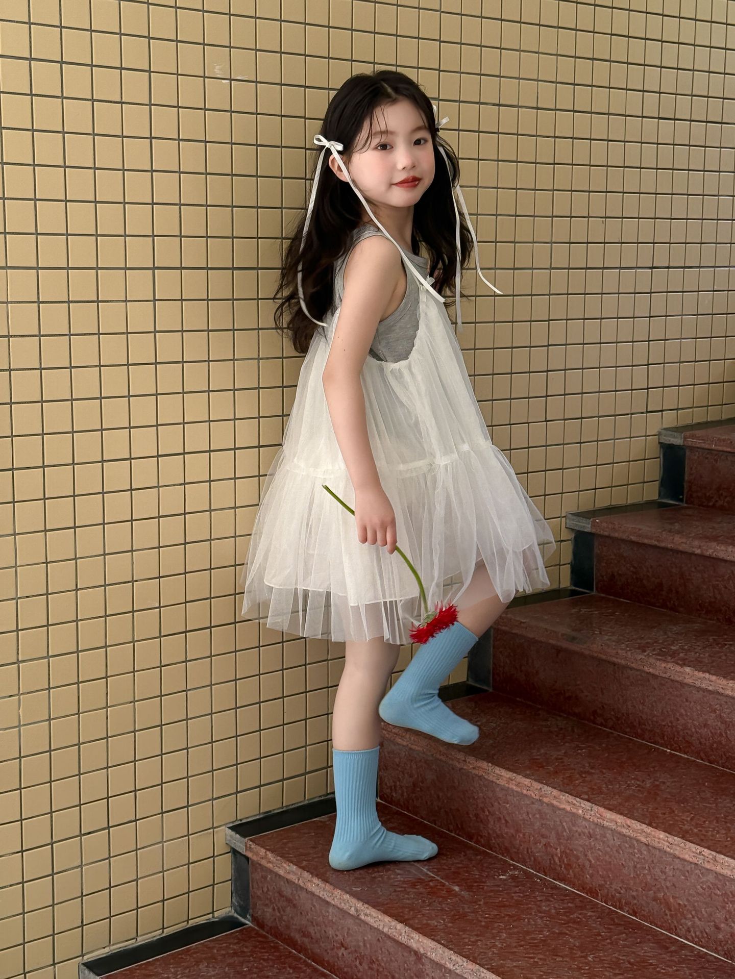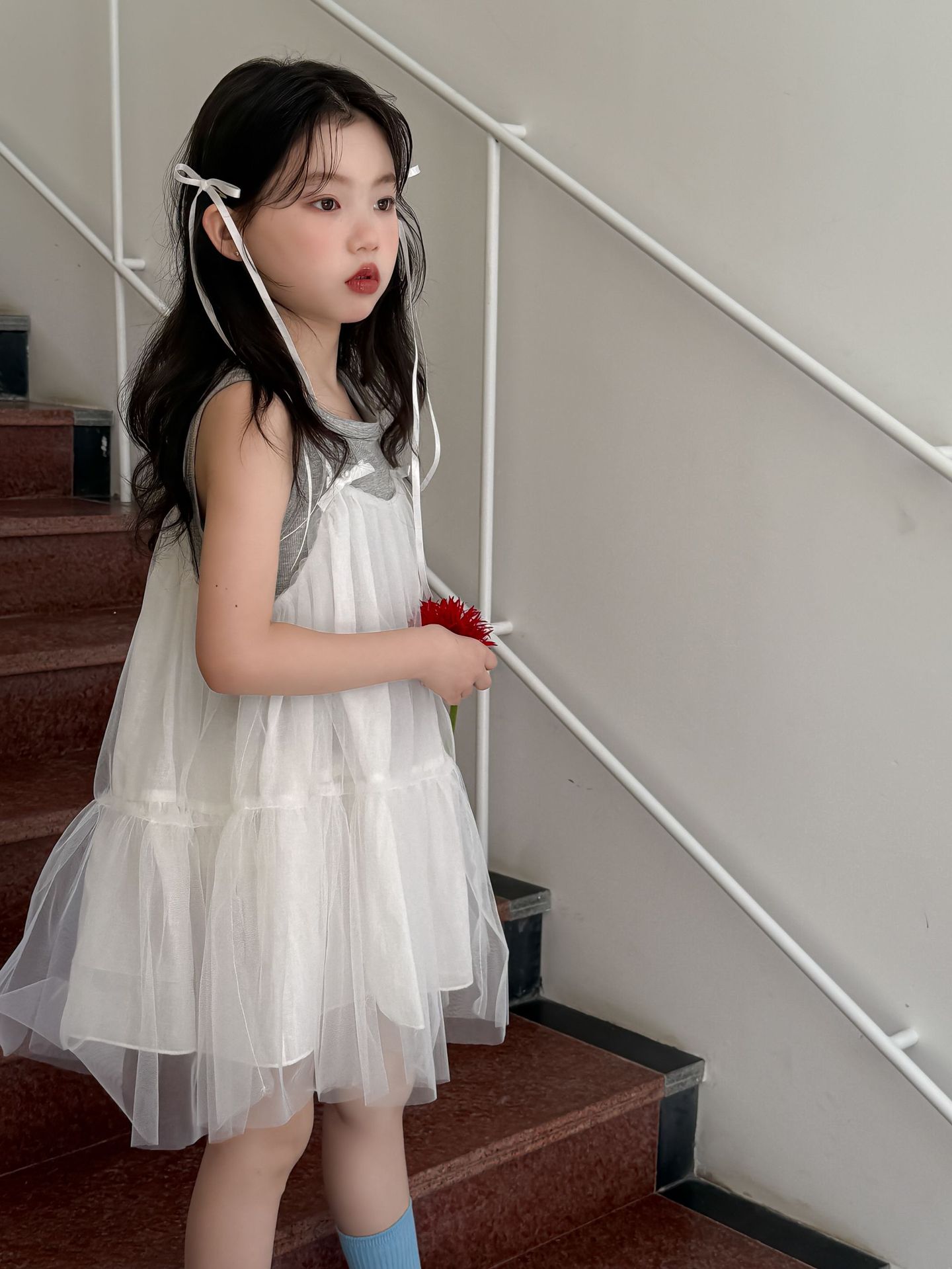 어린이 정장 2025 여름 소녀 민소매 조끼 활 서스펜더 흰색 거즈 스커트 투피스 세트 소녀 공주 스커트스토어 가기