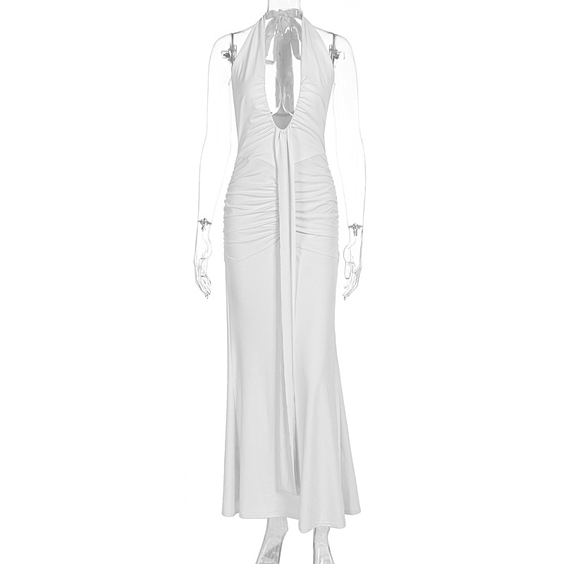 우아한 휴양지 스타일의 백리스 홀터넥 힙허깅 아메리칸 드레스 여성용 2025 여름 신상품 크로스보더 유럽 및 미국 스타일 여성복