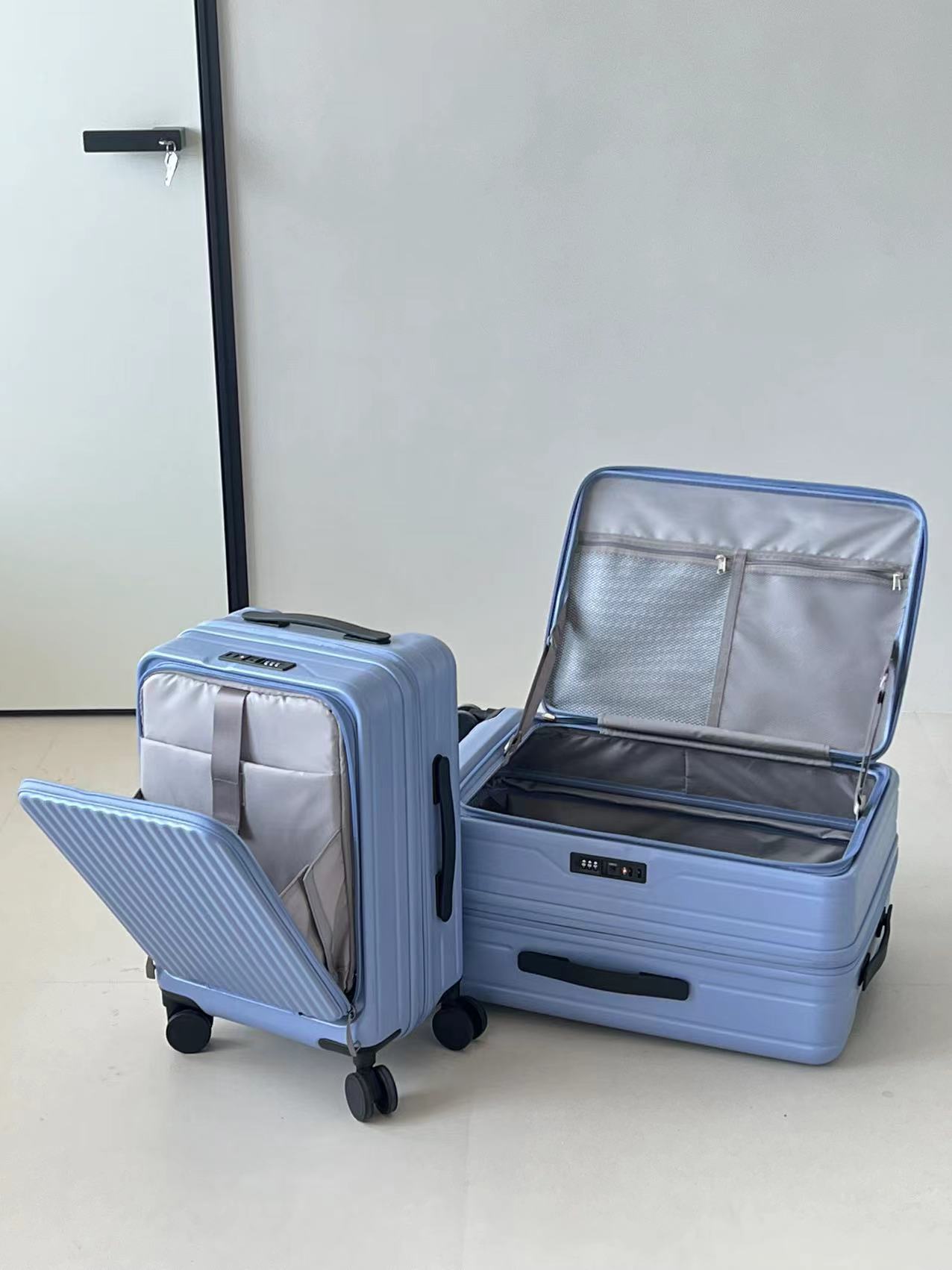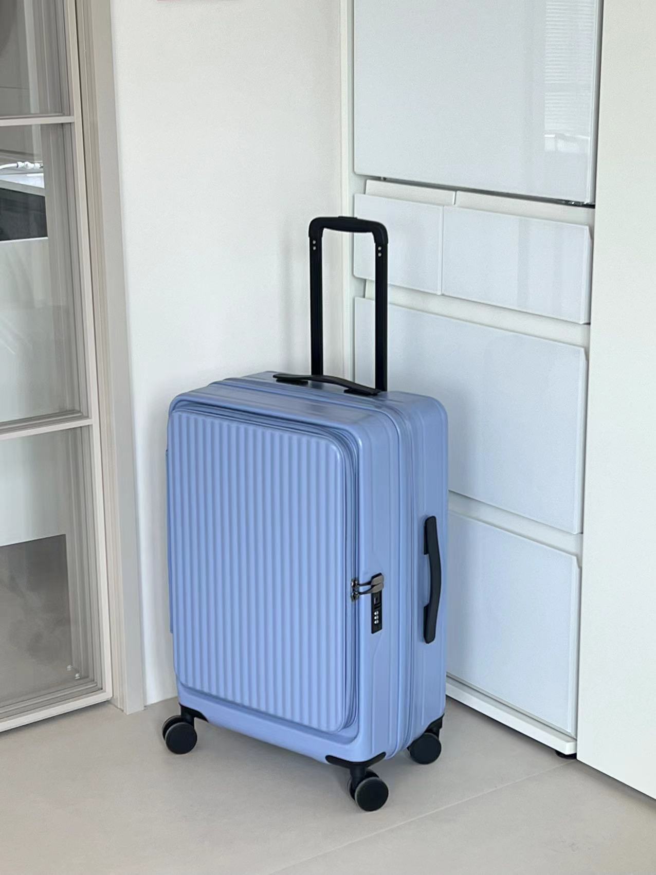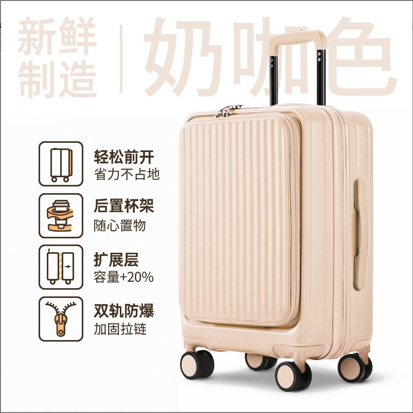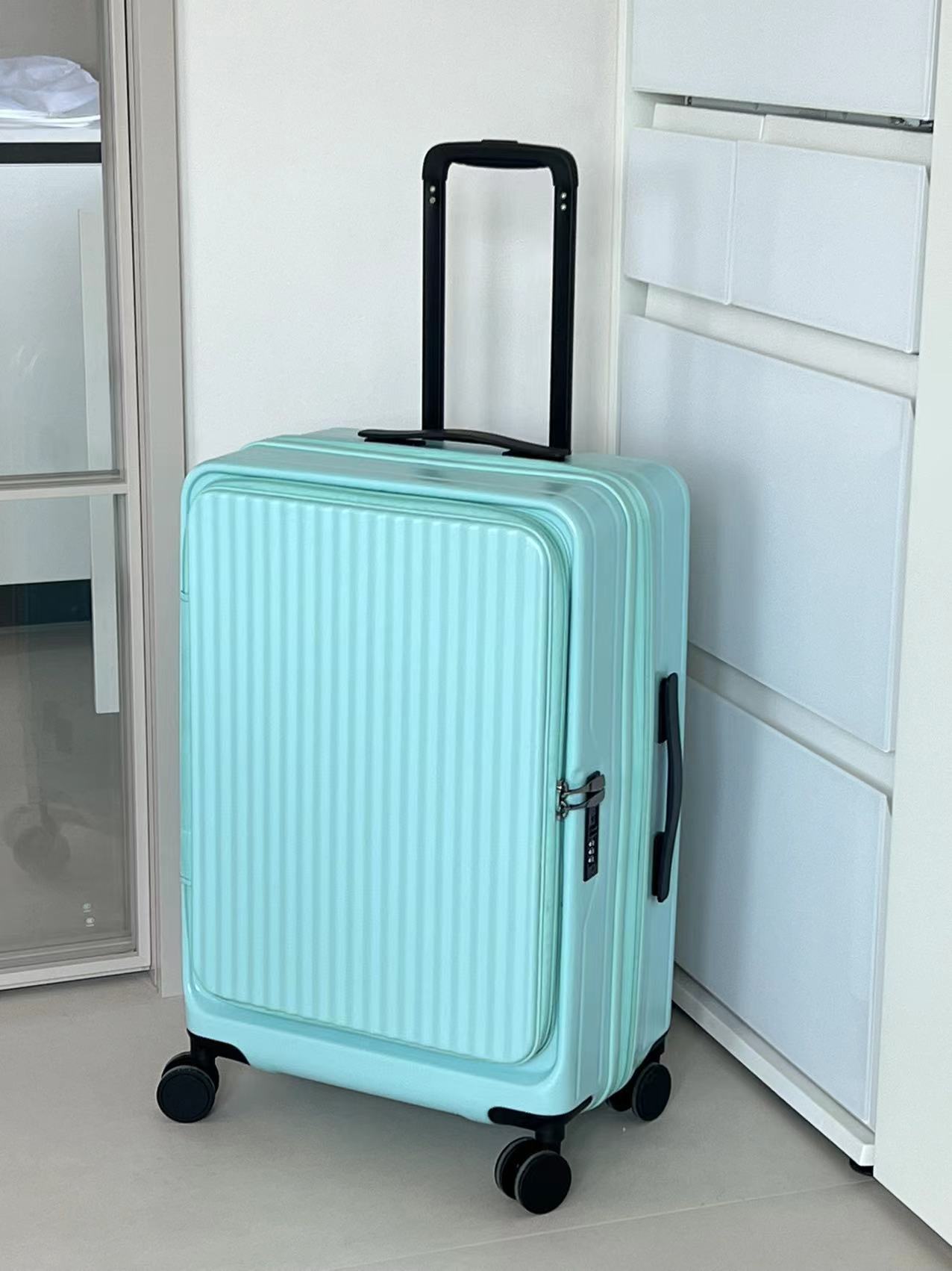 여성을위한 전면 개방형 가방 2024 새로운 확장 가능한 다기능 트롤리 케이스 20inch 가방 탑승 가방